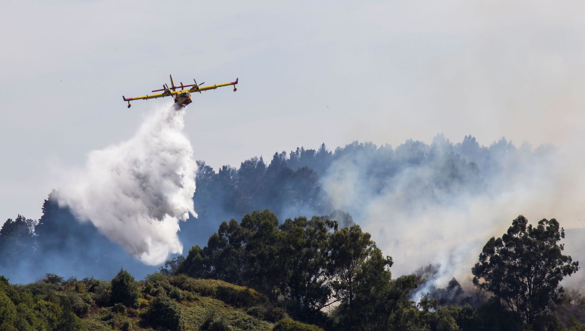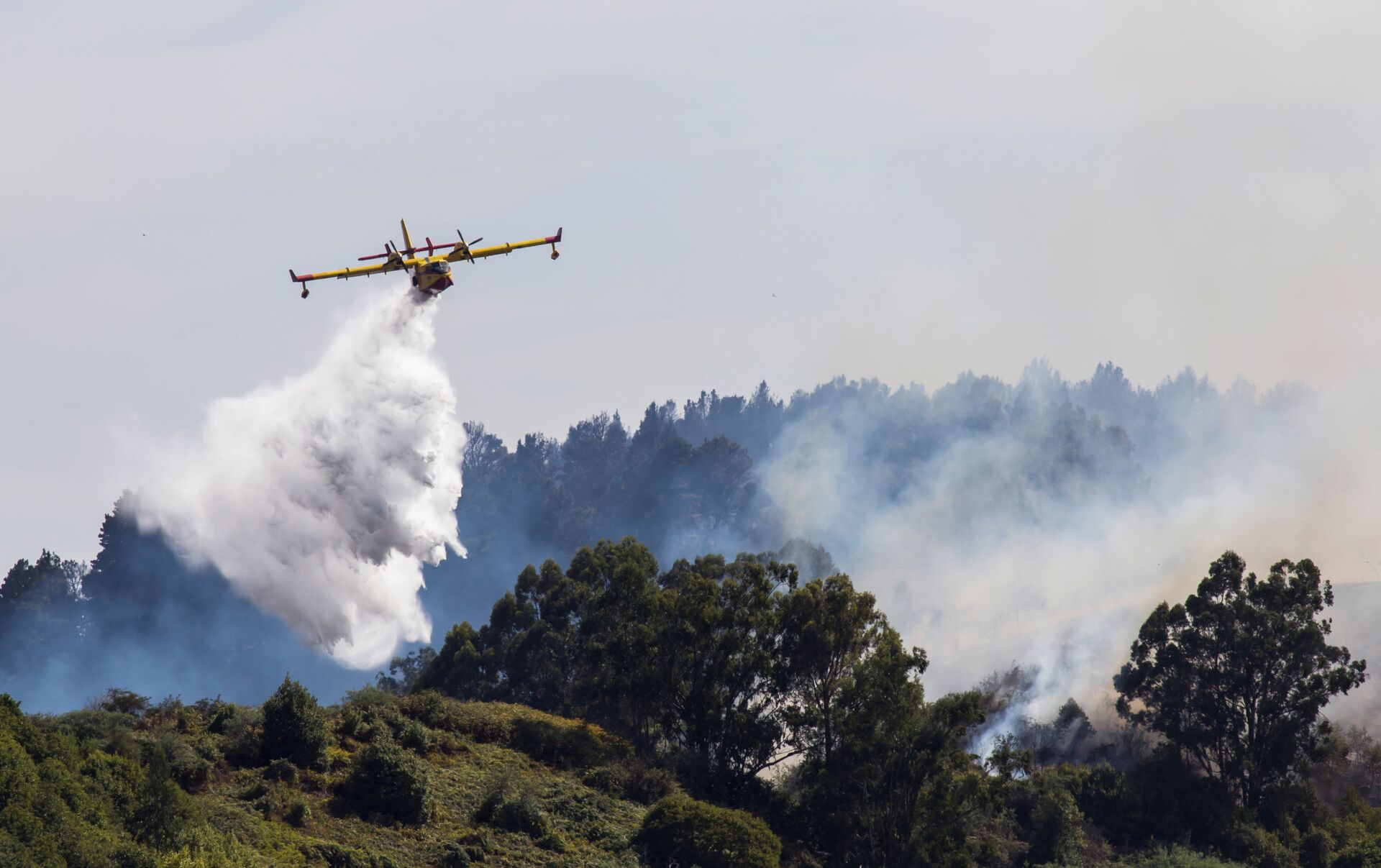 Cuatro hidroaviones realizaron 133 descargas, o más de un millón de litros de agua, en la zona del incendio, dijo Torres.