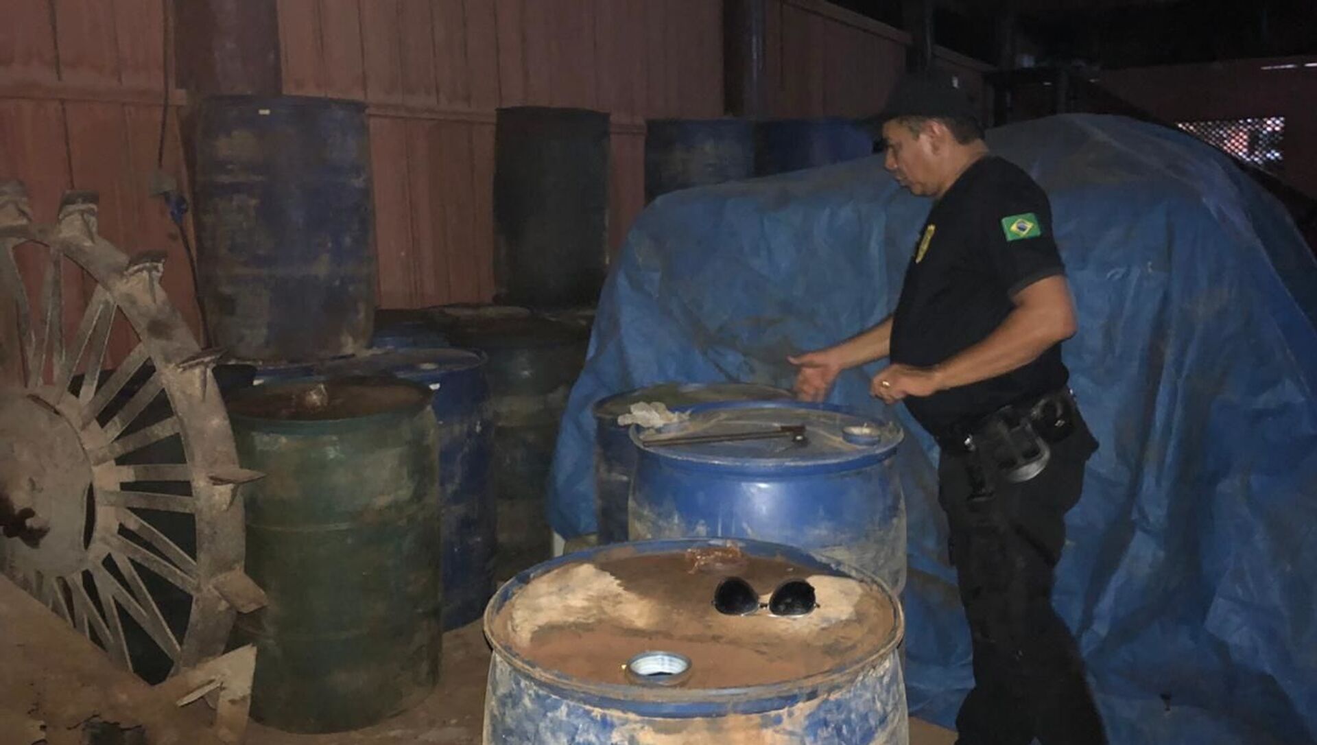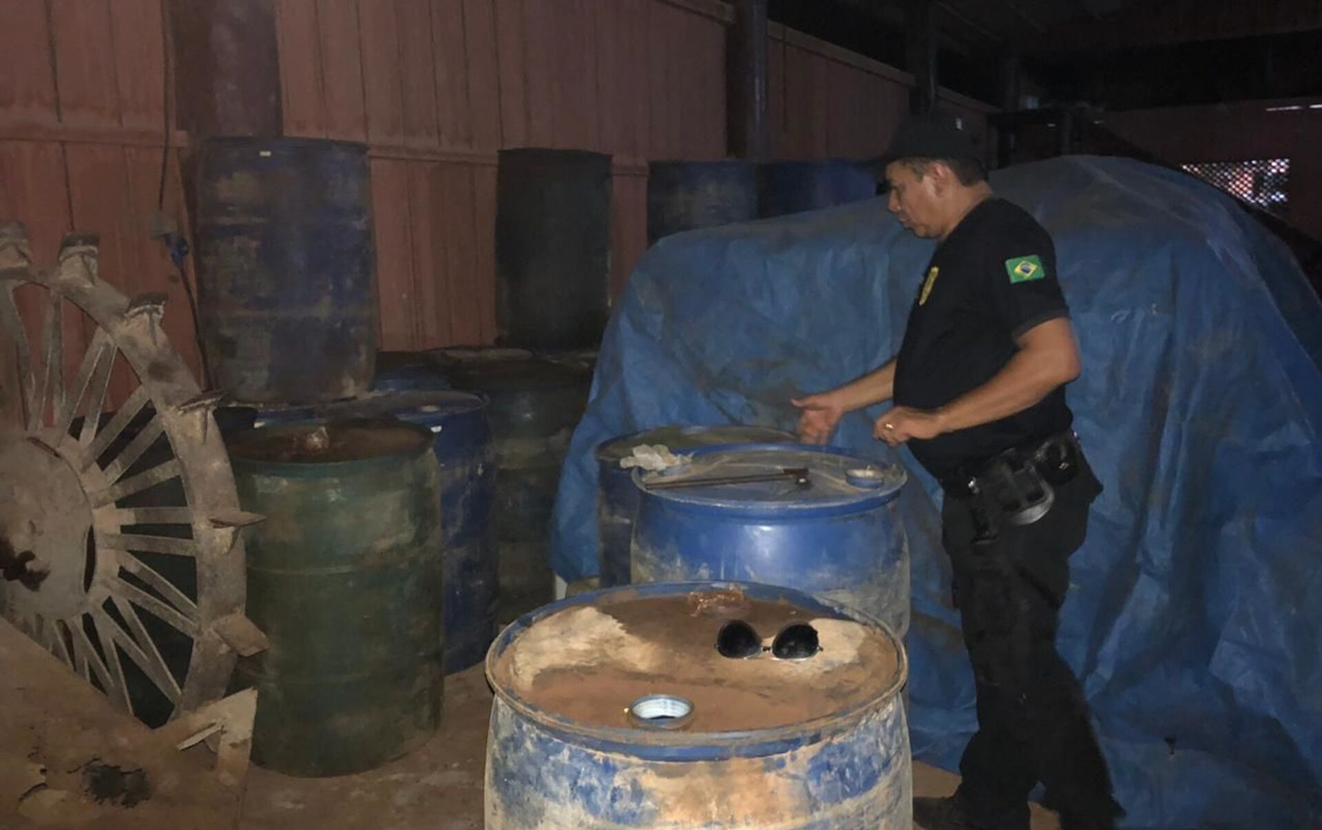 La policía también incautó numerosos galones, la mayoría con capacidad para almacenar hasta 200 litros de combustible, que fueron utilizados en los incendios intencionales, confirmó el jefe de la policía civil, Alberone Lobato, según lo escuchado a los empleados de la finca, que afirmaron que los galones se llevaban gradualmente al bosque para iniciar el fuego.
