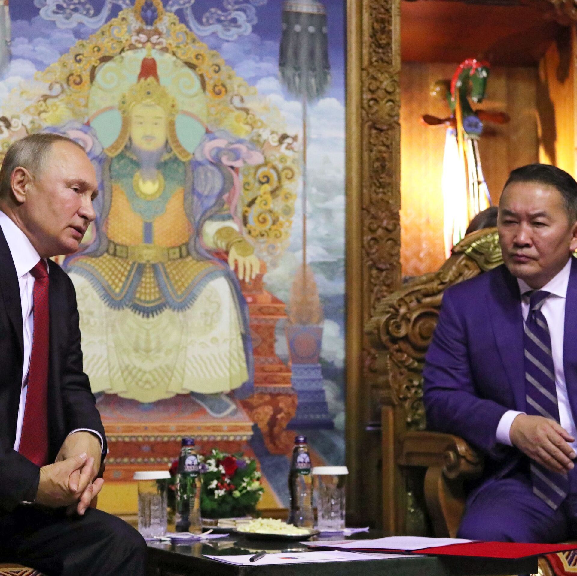 "Las relaciones avanzan de la mejor manera y se destacan por su calidad, de hecho me refiero a la alianza que hemos construido, son relaciones de fraternidad entre nuestros pueblos", dijo Putin al inicio de las conversaciones con el mandatario mongol.