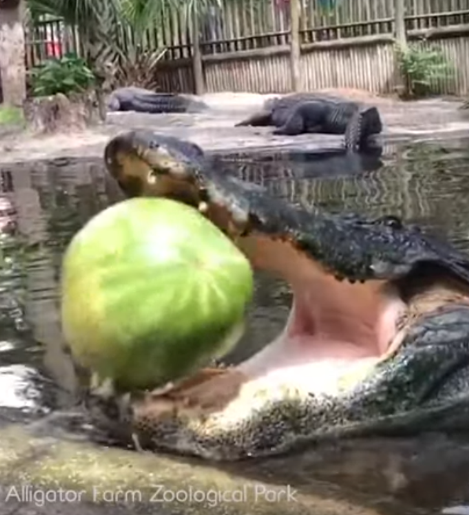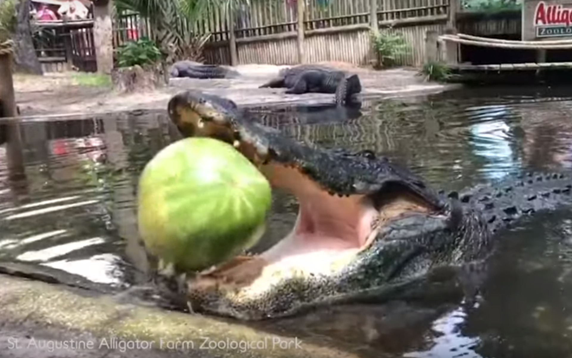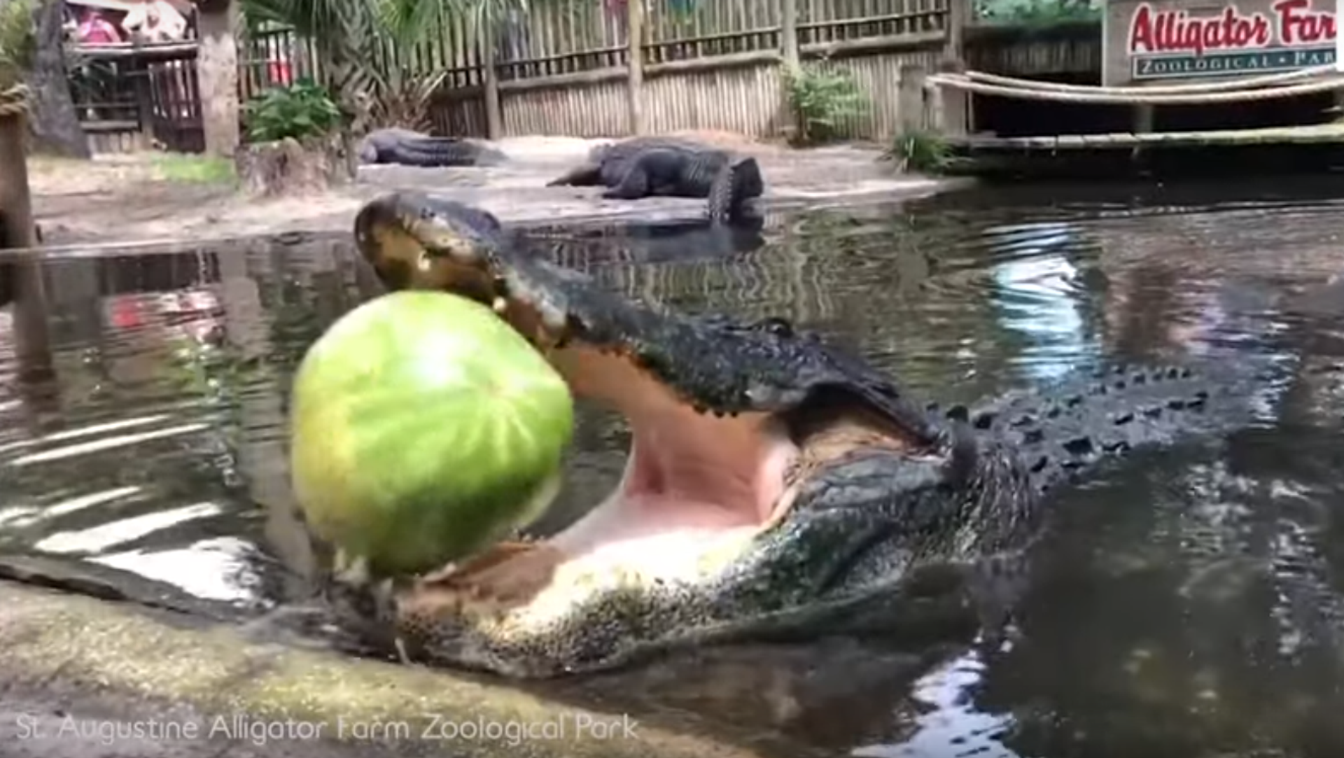 Un enorme aligátor hace explotar una sandía