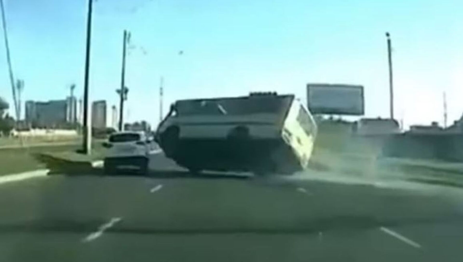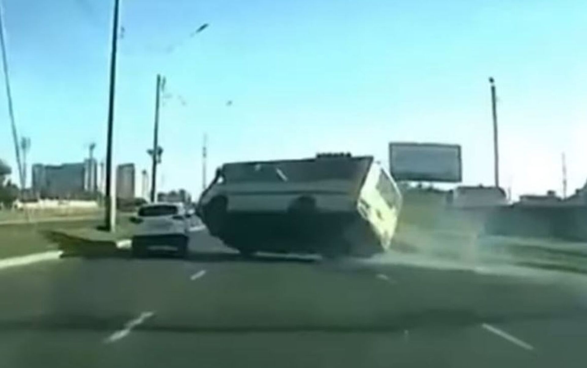 El incidente, que ocurrió en la ciudad rusa de Stávropol, lo grabó uno de los autos que iba detrás de los protagonistas. En las imágenes se puede ver cómo un sedán cambia repentinamente de carril cortando el paso al autobús.
