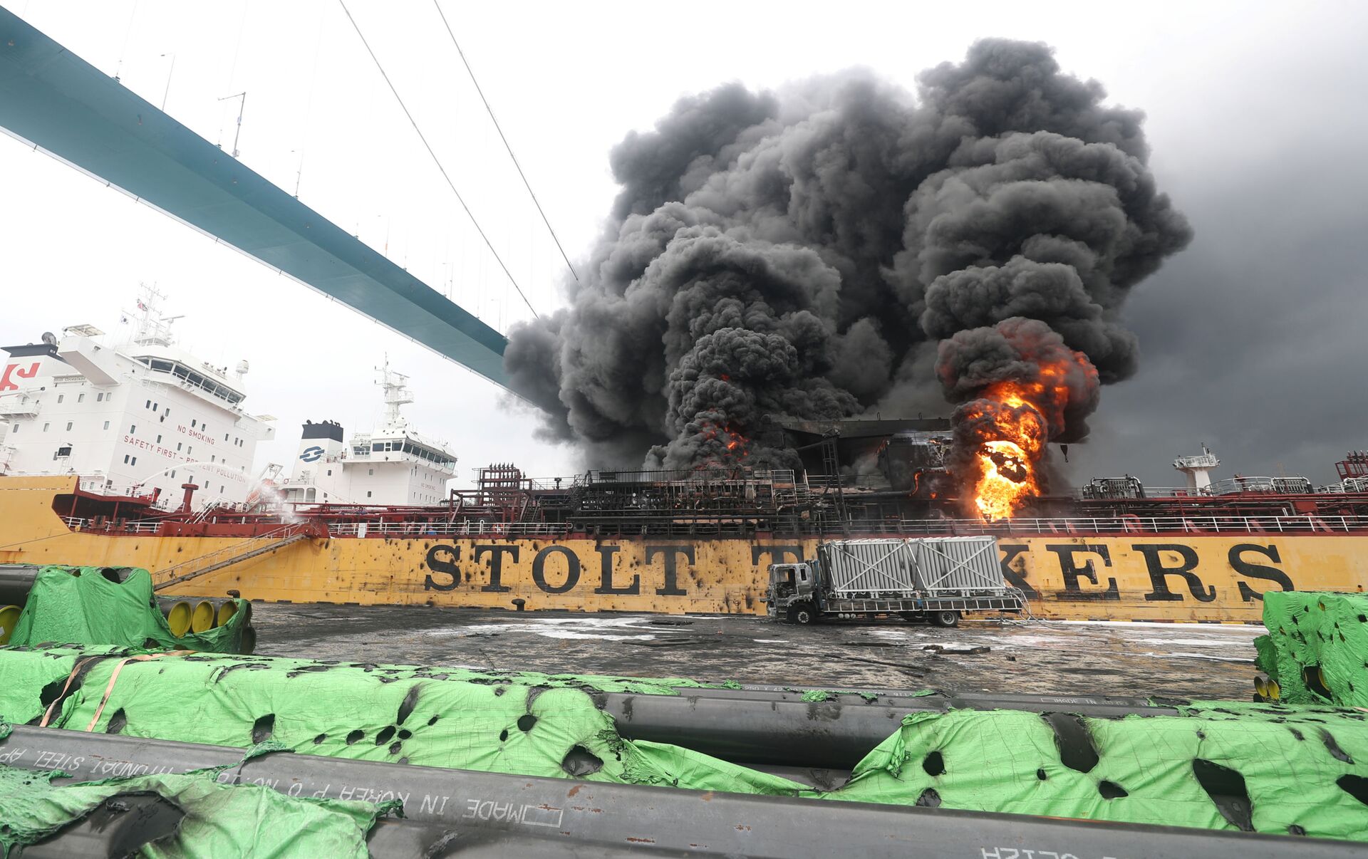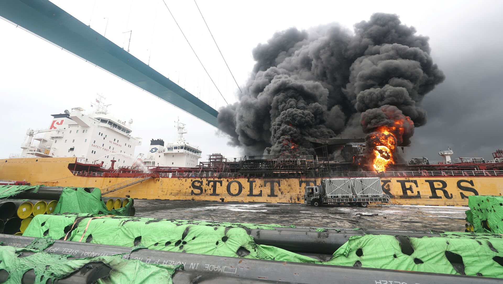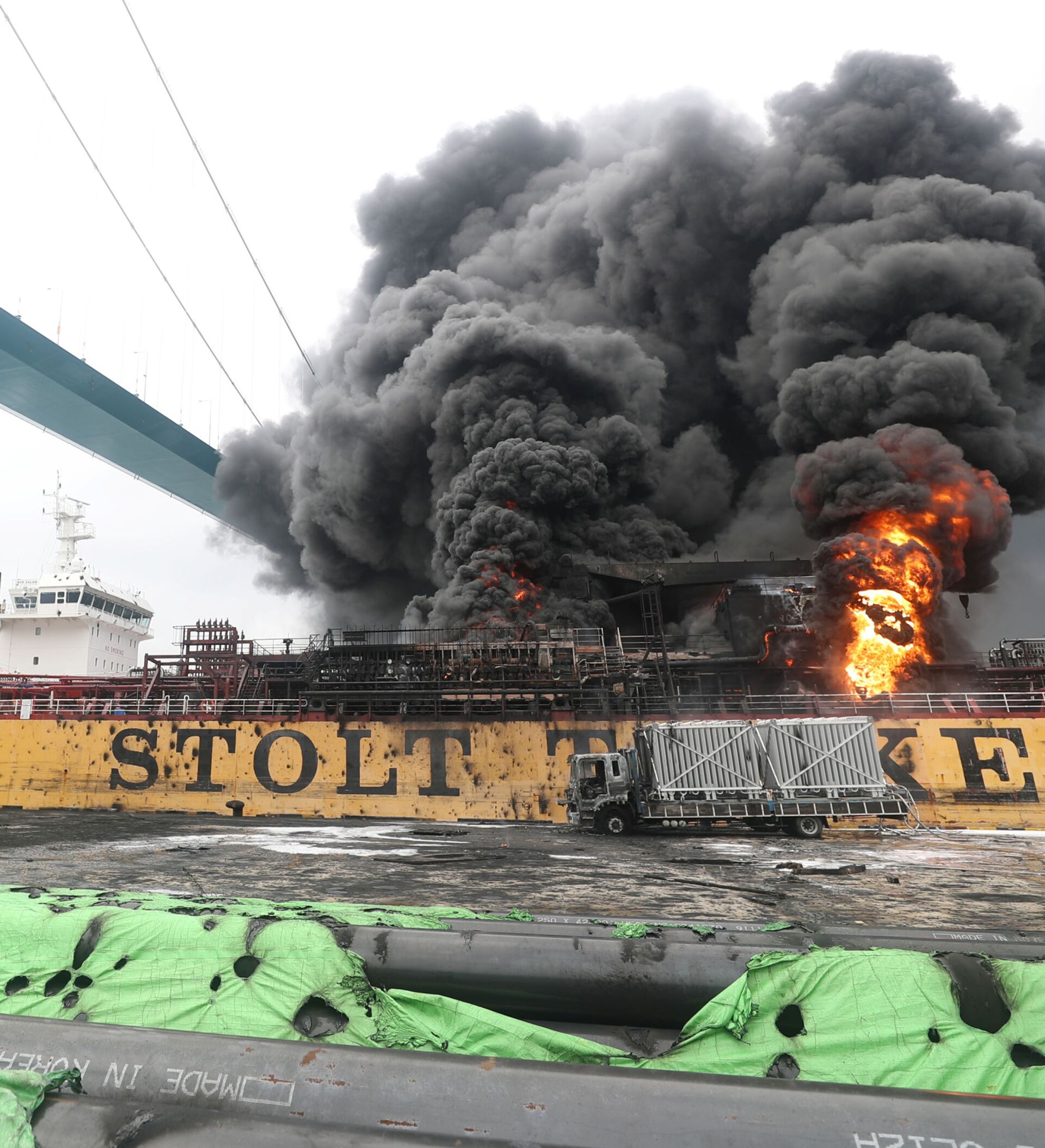 Nueve #personas heridas por #eXplosion en petrolero en puerto coreano de #ulsan, en un #incendio que afectó a dos buques, luego de una explosión en Stolt Groenland, atracado en el Puerto de #ulsan, Corea del Sur.