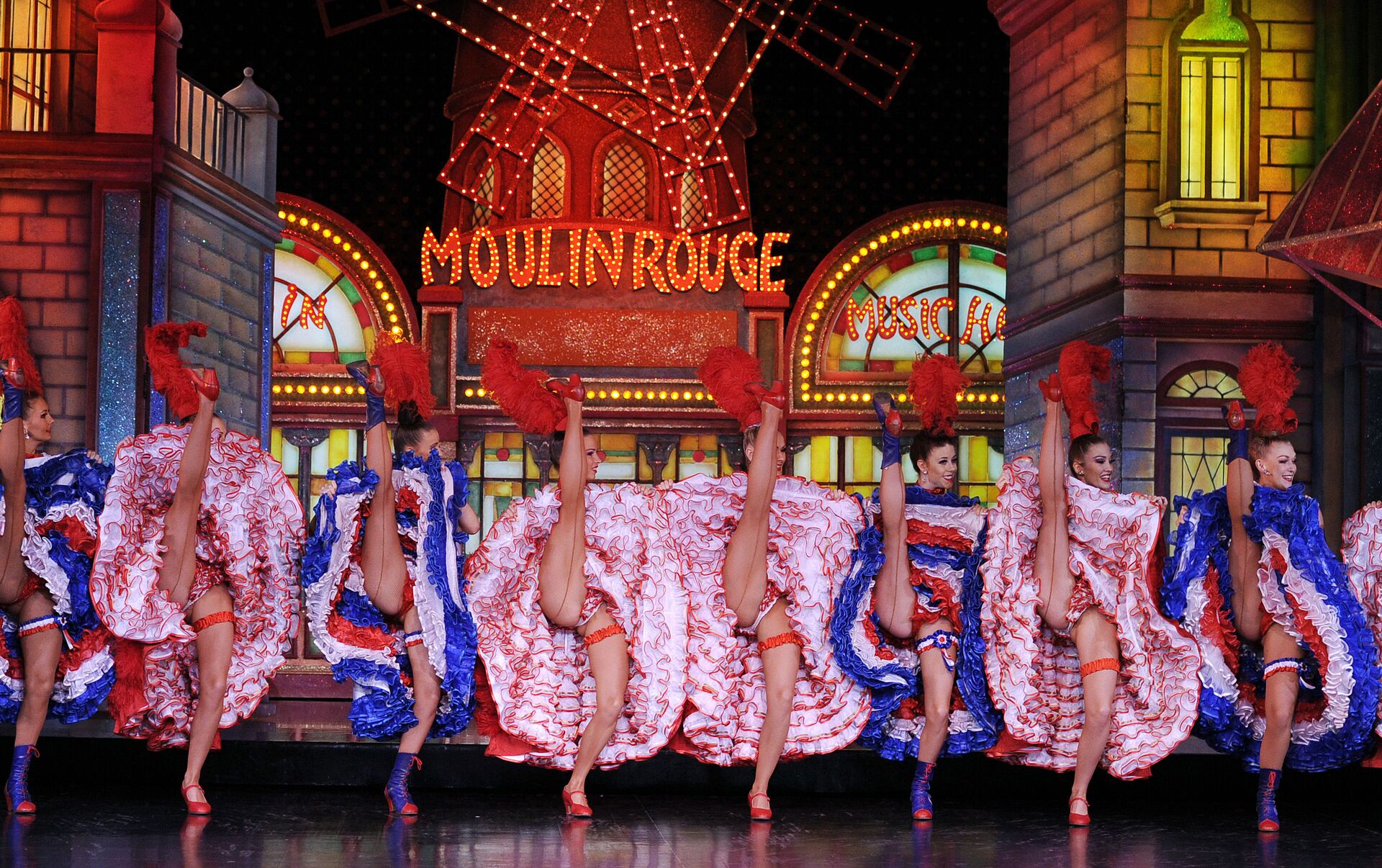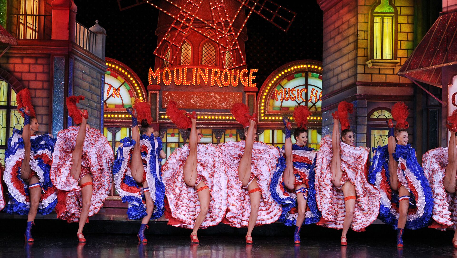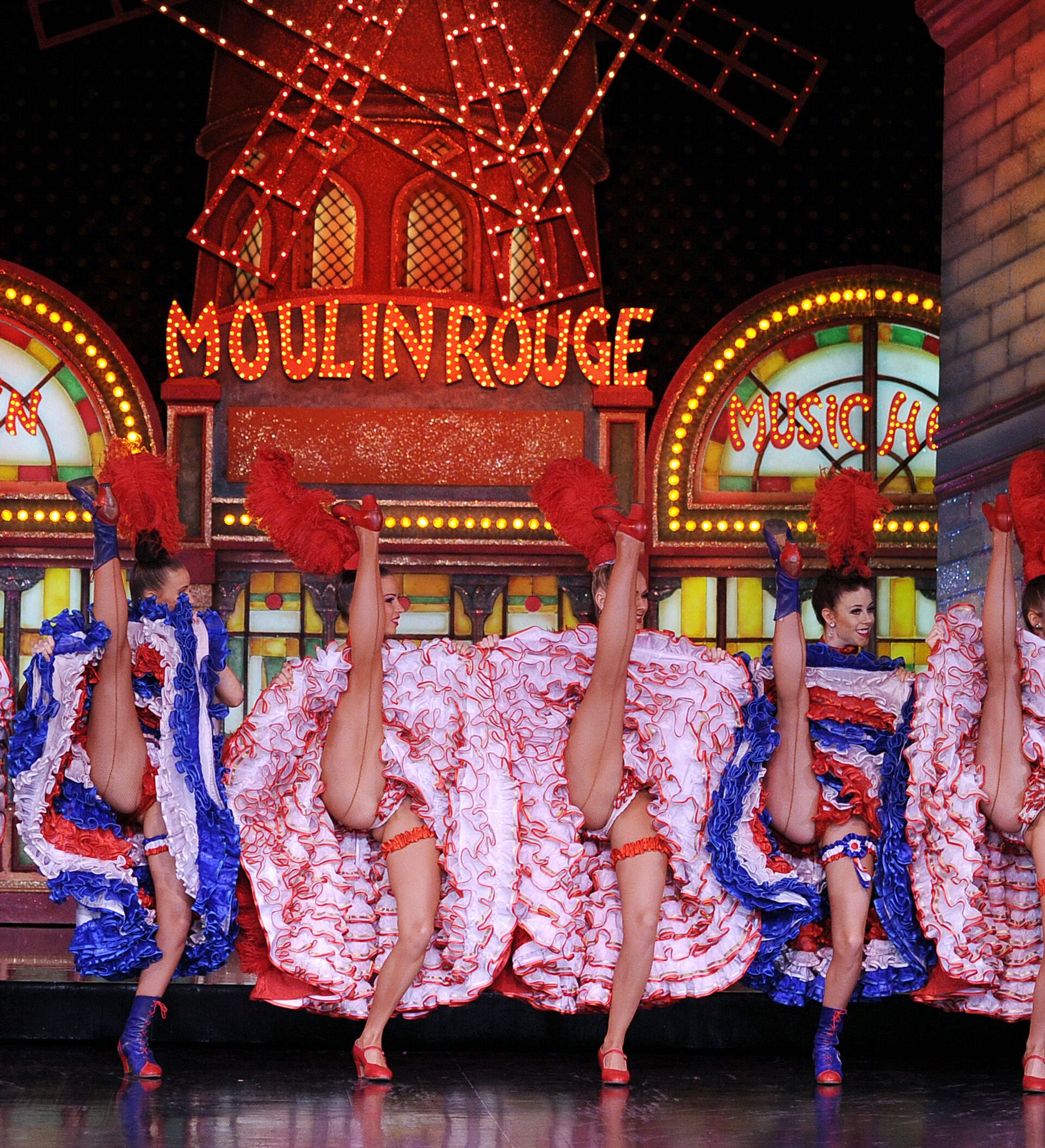'Moulin Rouge' se traduce literalmente del francés como 'molino rojo'. Las aspas rojas señalaban la ubicación del cabaret, en el barrio rojo de la capital de Francia. En la foto: el espectáculo 'Feerie'.