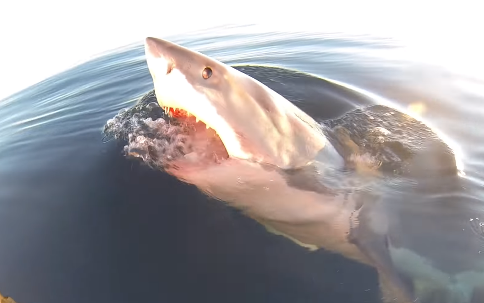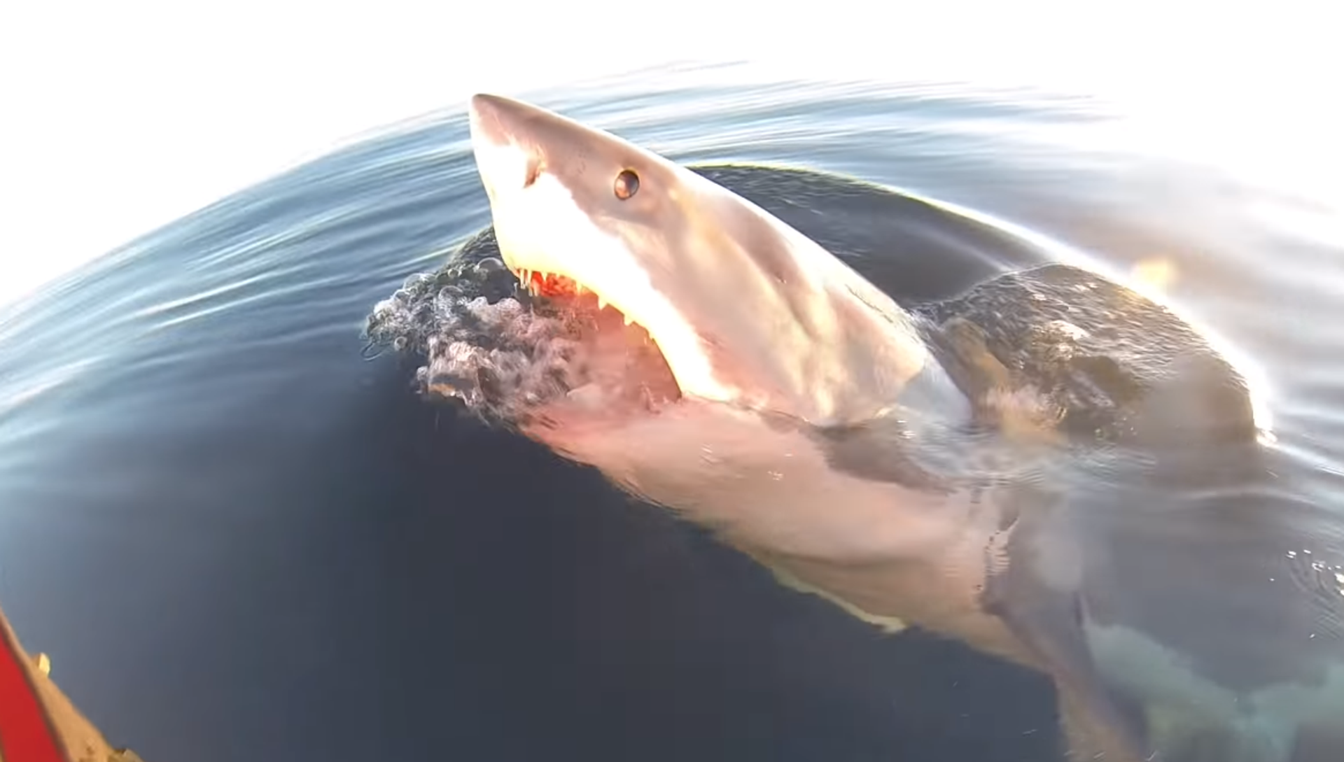 En lugar de sentirse atemorizados, los hombres se ponen a filmar el suceso y llegan, incluso, a meter su cámara GoPro en el agua para obtener mejores imágenes de la criatura que llega a embestir contra el barco un par de veces.