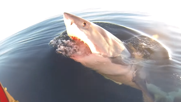 Las imágenes compartidas por Arron Piekarski, uno de los pescadores a bordo del barco, muestran el momento en el que un curioso escualo de cerca de tres metros y medio se acerca a su barco y empieza a rodearlo.