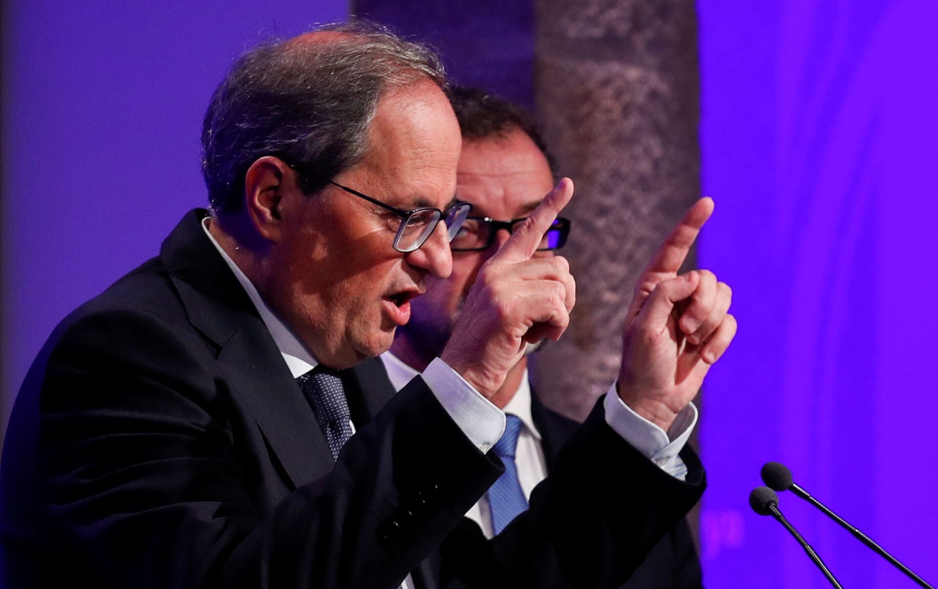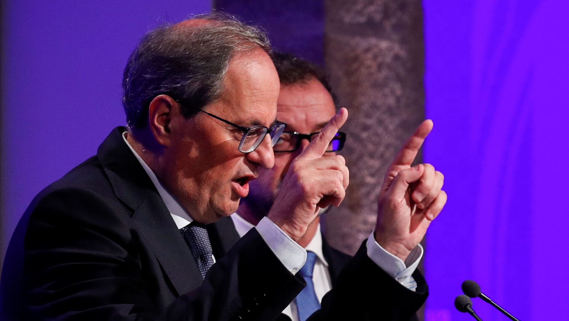 En su breve conversación con los medios, Torra volvió a calificar el fallo del Tribunal Supremo español contra los líderes independentistas catalanes como "una sentencia farsa" y, además de agradecer a todos los manifestantes su presencia en la marcha, reafirmó su compromiso para garantizar que este tipo de actos de protesta puedan seguir celebrándose.
