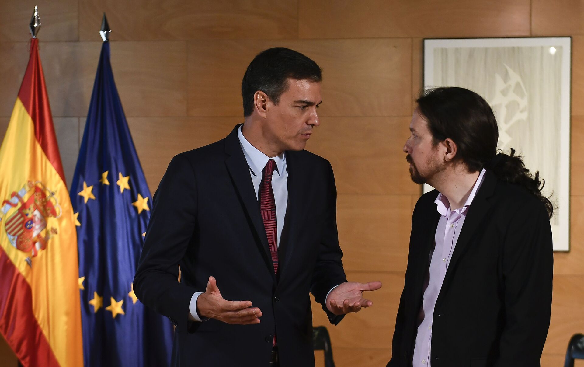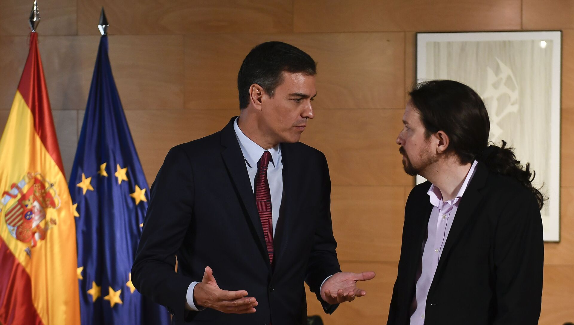 Ambos políticos han estado reunidos en la sede del Congreso de los Diputados para cerrar los flecos del preacuerdo, que no incluiría vetos esta vez y permitiría a Iglesias ser vicepresidente segundo del Ejecutivo.