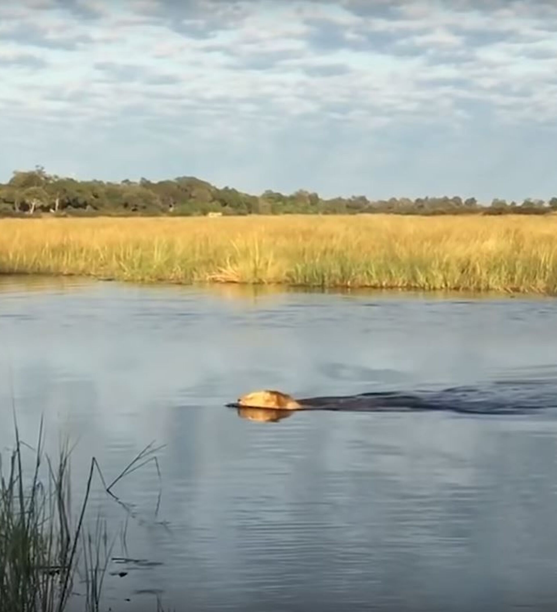 Las imágenes, grabadas en el río Linyanti entre Namibia y Botsuana, muestran cómo el más joven de los dos felinos se adentra en el agua a pesar de que a simple vista hubiese un cocodrilo. Al principio, el segundo león duda si meterse o no, pero acaba siguiendo a su hermano pequeño.