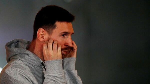 El futbolista Lionel Messi durante una presentación - Sputnik Mundo