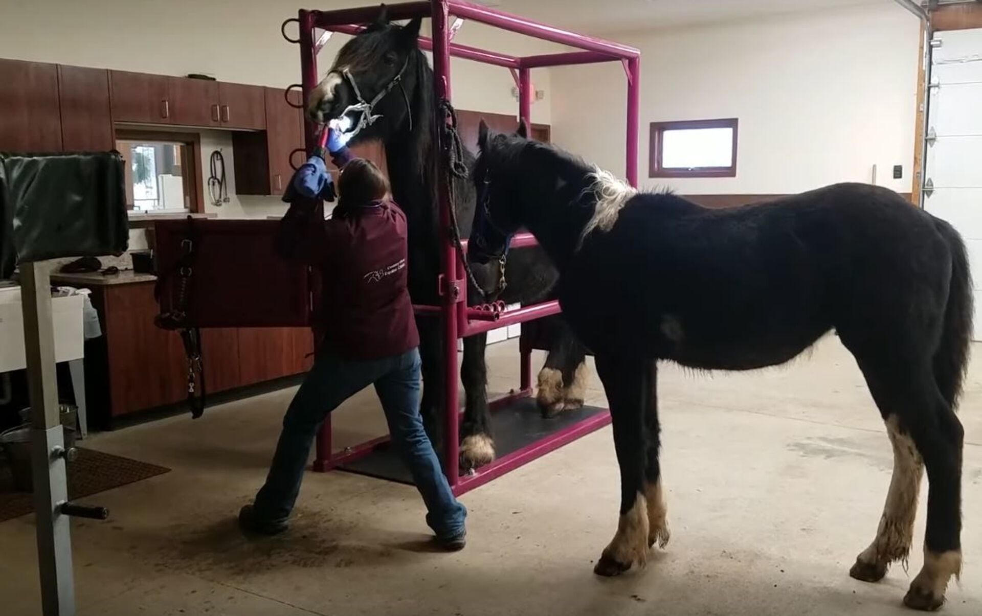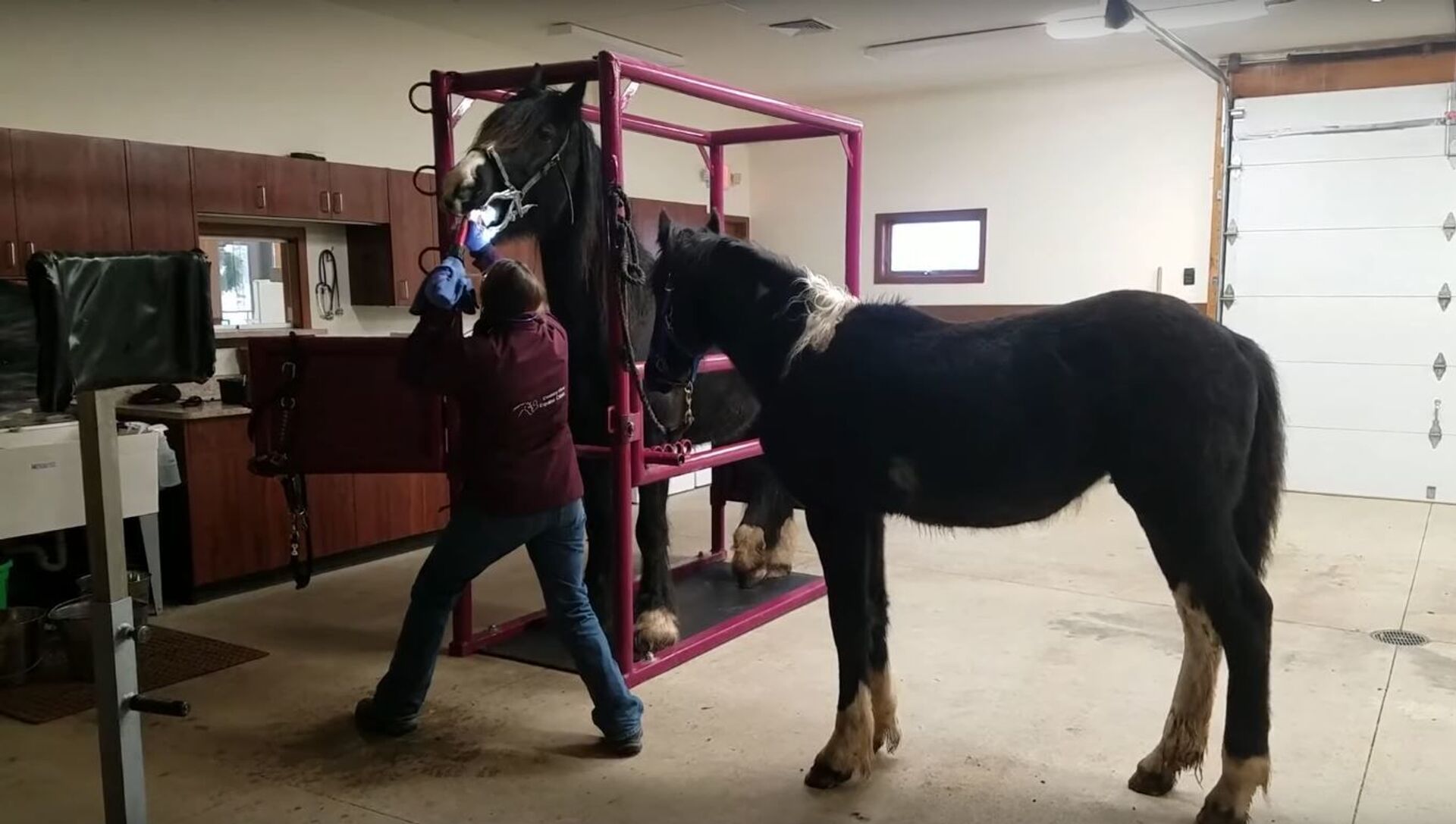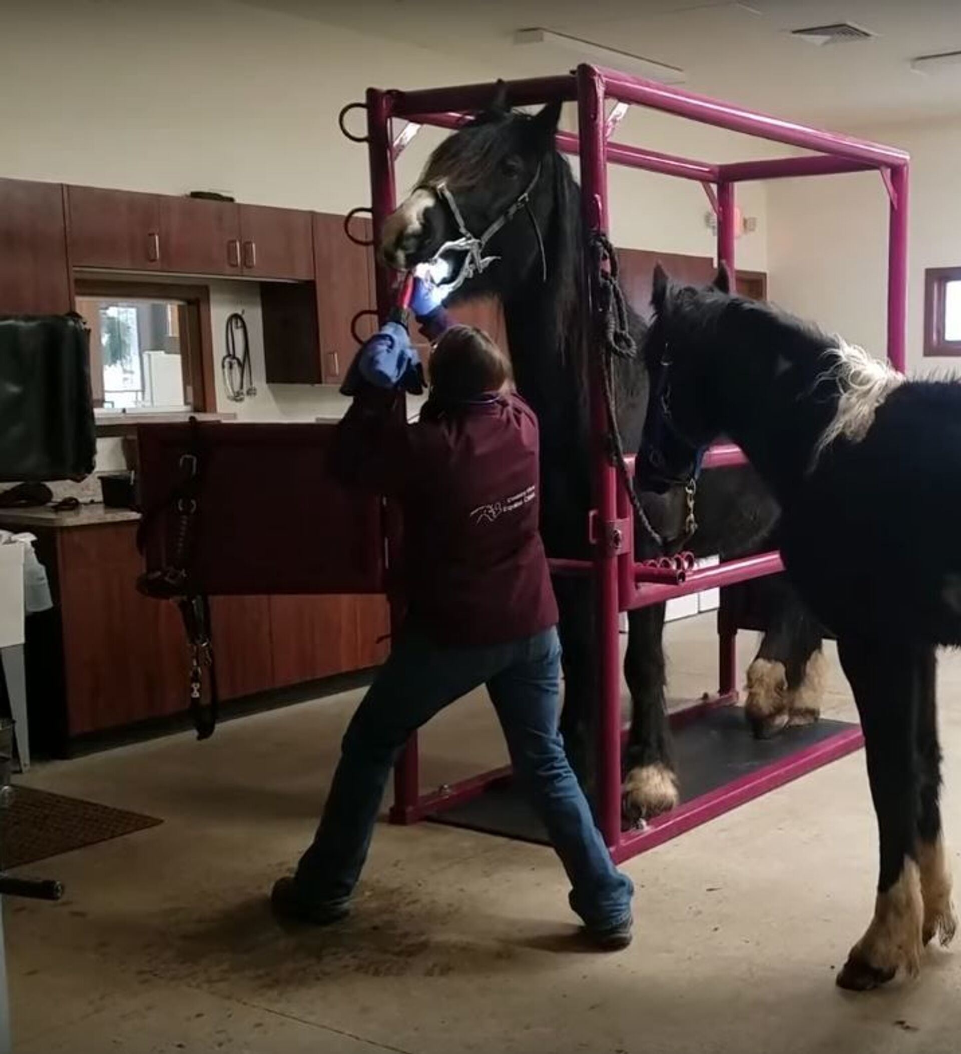 Las imágenes muestran cómo una dentista veterinaria lleva a cabo un procedimiento que aparenta ser de lo más doloroso. Incluso, otro caballo, Medici, se acercó para apoyar al paciente, Scrabble, y para satisfacer su curiosidad.