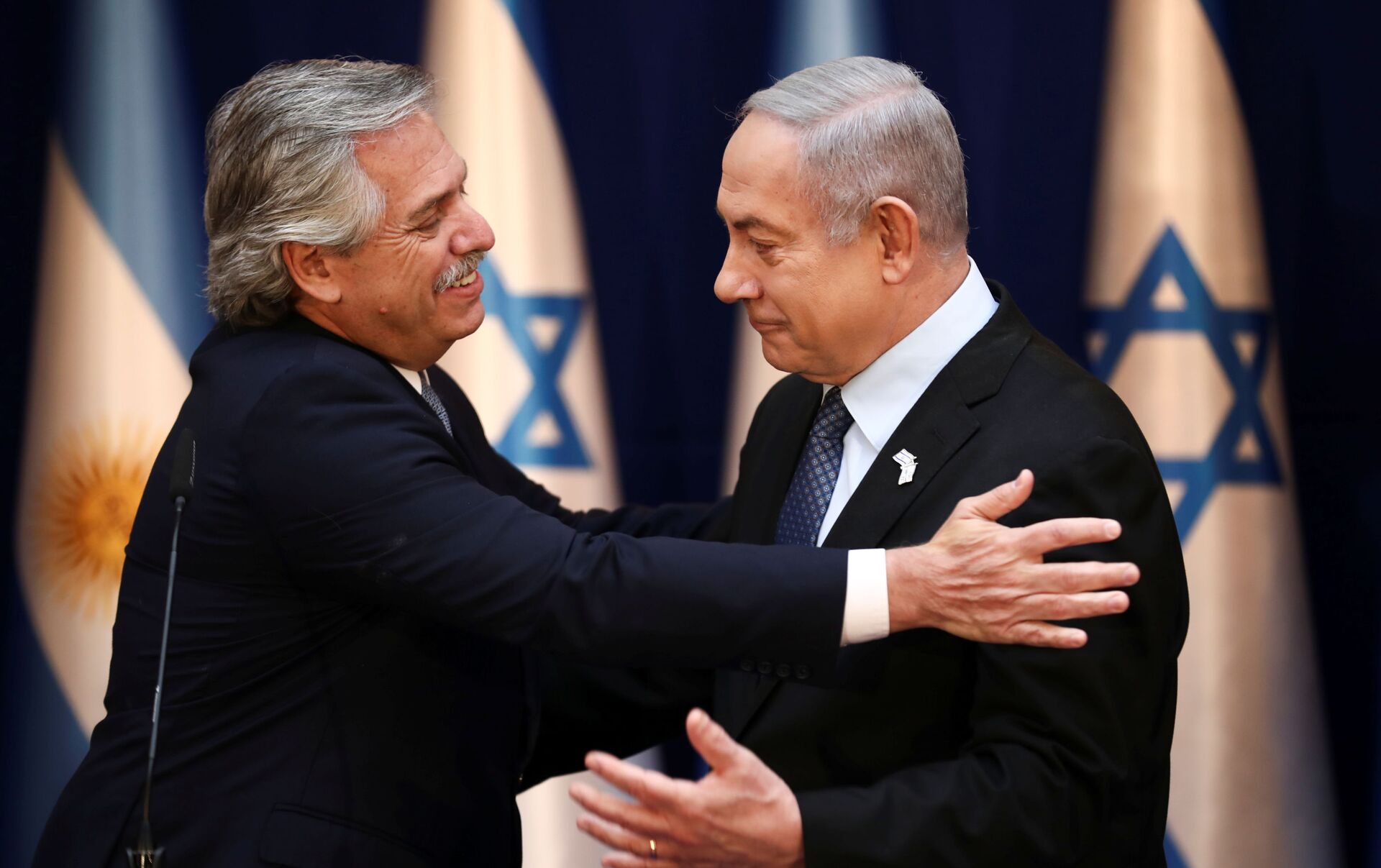 El presidente de Argentina, Alberto Fernández, y el primer ministro israelí, Benjamín Netanyahu - Sputnik Mundo