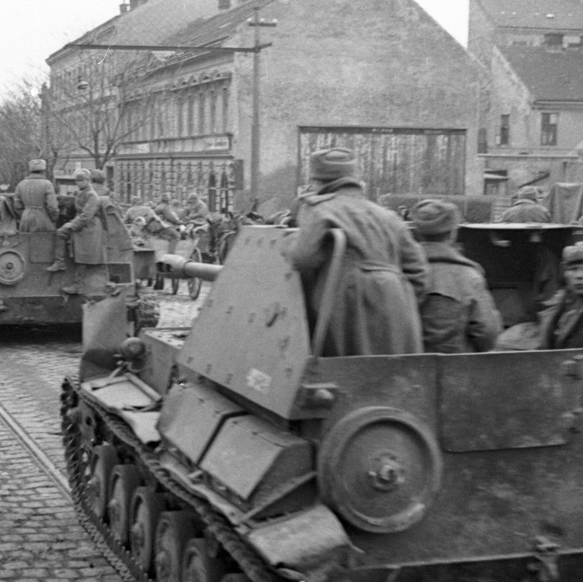 Los soldados alemanes habían organizado tres líneas de defensa que reforzaron a medida que las tropas soviéticas avanzaban hacia Viena. La primera línea se extendía a una distancia de entre cinco y siete kilómetros de la orilla del río Gron, donde había trincheras protegidas con campos de minas.