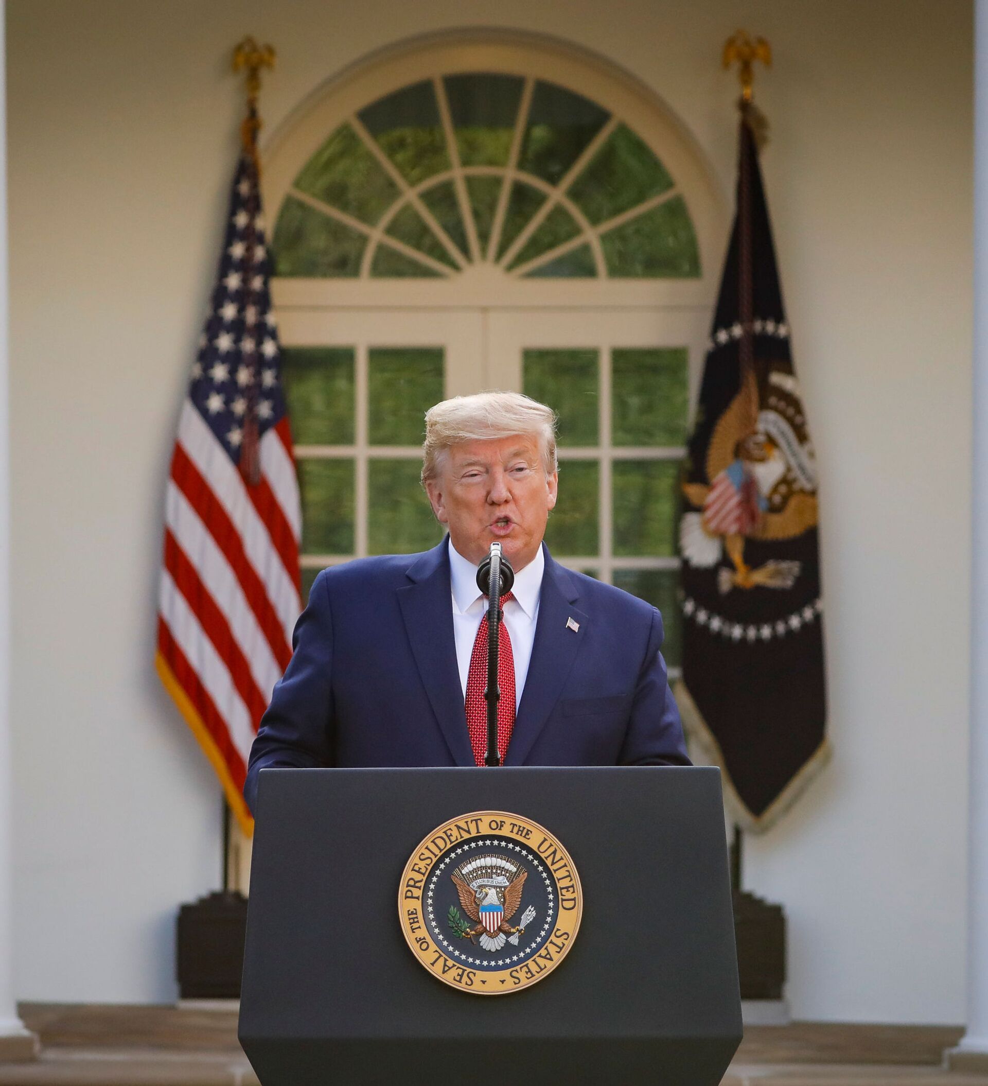 "Durante el fin de semana, el número de nuevas infecciones diarias se mantuvo estable, en todo el país", dijo Trump el lunes, "las hospitalizaciones están disminuyendo en los puntos críticos como Nueva York, Nueva Jersey, Michigan y Louisiana".