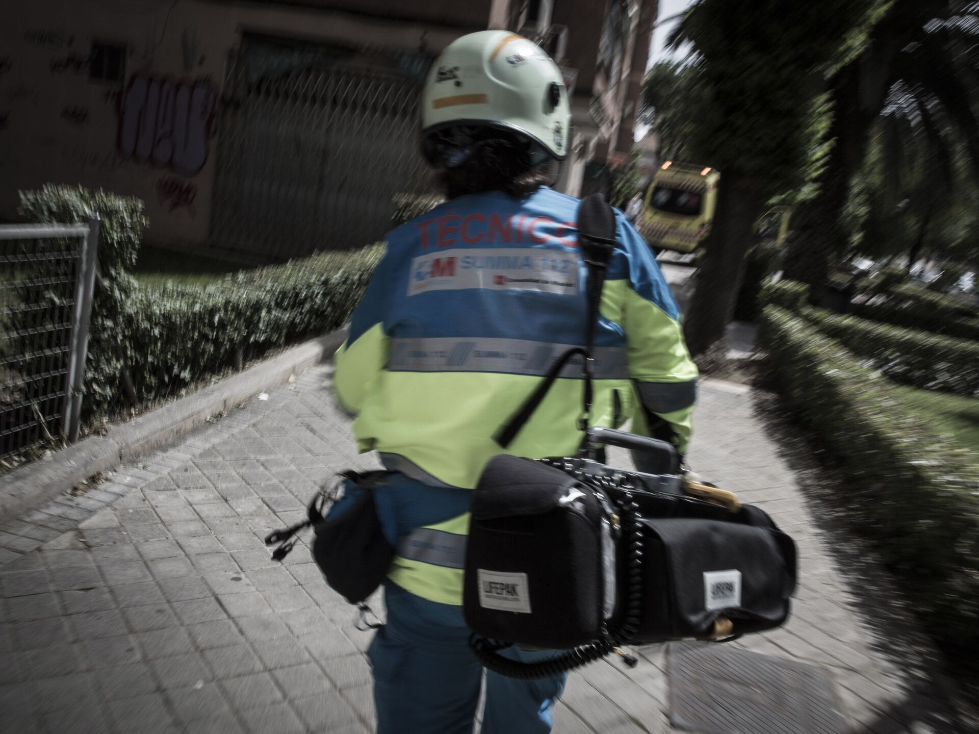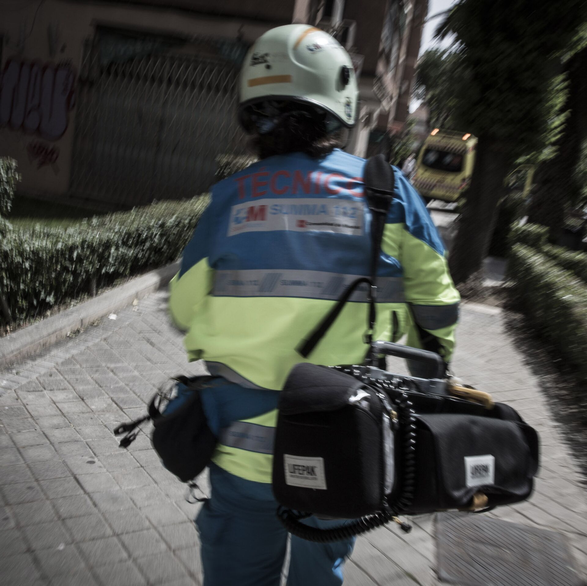 Le corta un aviso. "Incendio. Calle del Priorato. Tres pacientes". La reacción no tarda. Andrés Gil abandona la meditación, se recoge el pelo y brinca al automóvil con el resto del equipo. El accidente se ha producido a pocos metros, en el mismo municipio. Los pacientes ya están en la calle y los miembros del SUMMA 112, por tanto, no necesitan EPIs. Acuden directos al mogollón. Decenas de curiosos, asomados por las ventanas o parados en la acera, observan el acontecimiento.