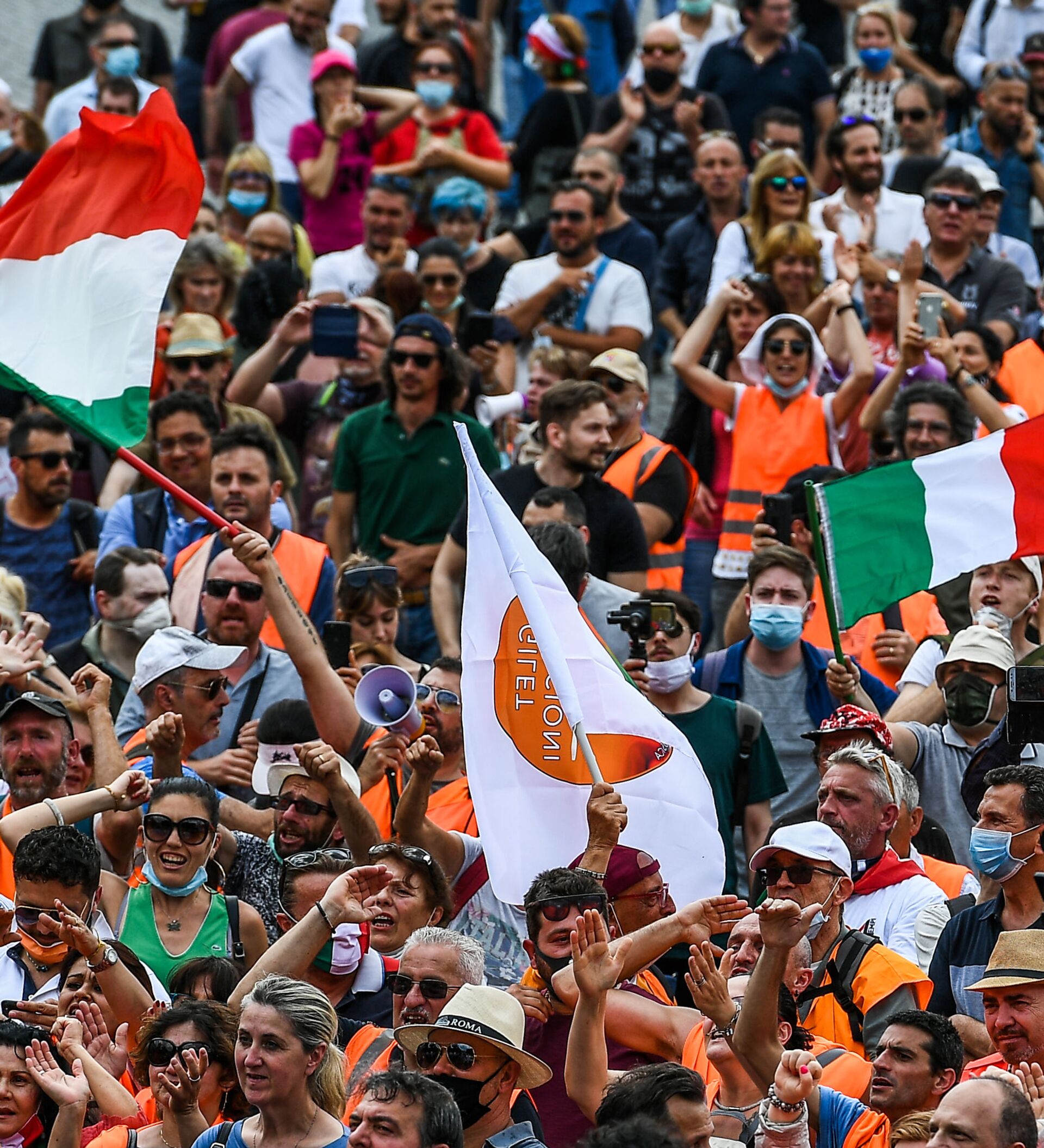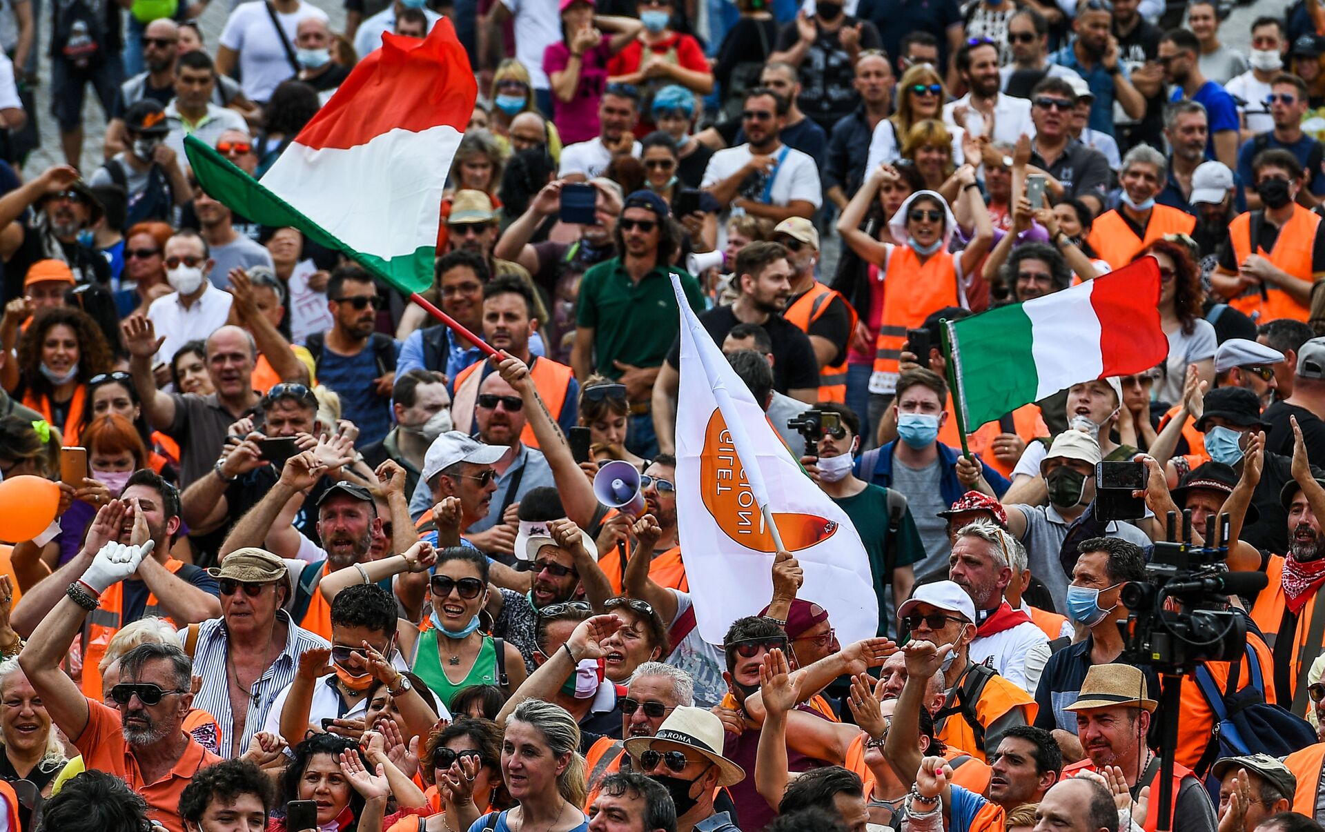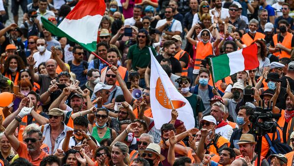 El pasado 30 de mayo la Piazza del Duomo (Plaza de la Catedral) de Milán se llenó de chalecos naranjas que escucharon con entusiasmo el discurso de Pappalardo. Entre los presentes pocos llevaban las mascarillas, un comportamiento que el general, que tampoco la tenía, explicó con un "es que se quieren".