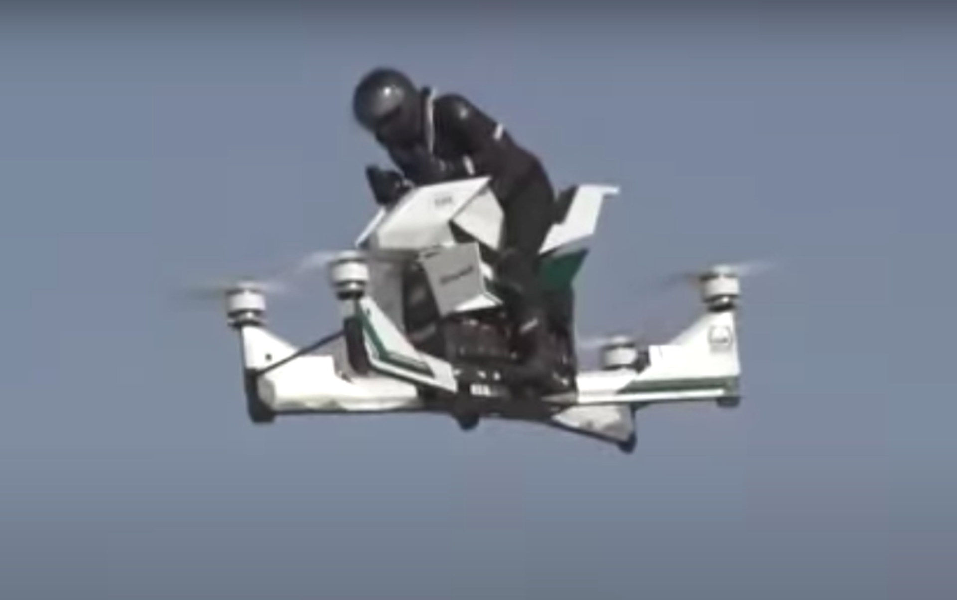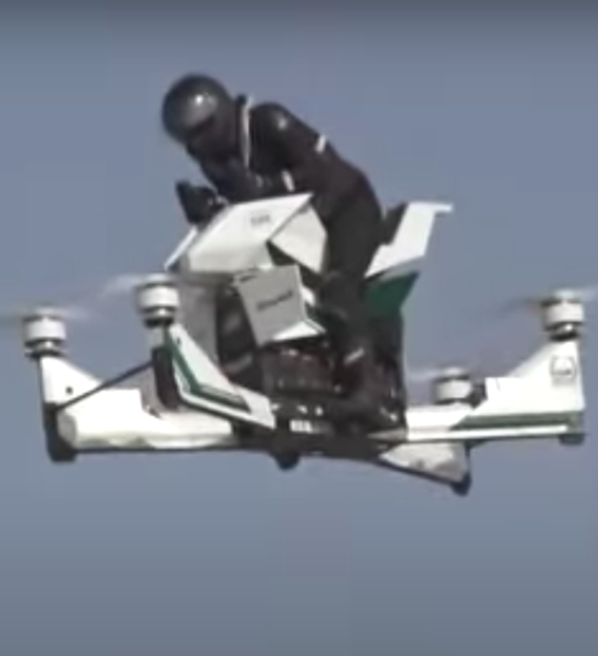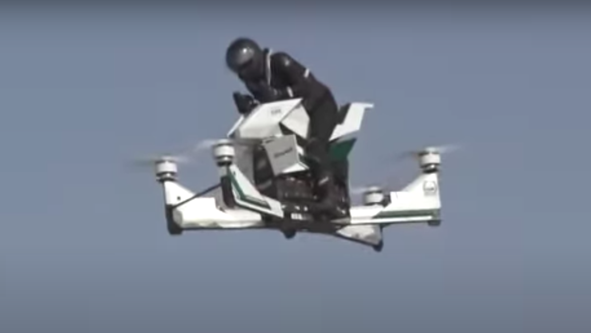 La hoverbike Scorpion-3 de Hoversurf fue presentada en la exposición GITEX de Dubái en 2017 y está capacitada para ser pilotada por una persona o bien teledirigida desde tierra.