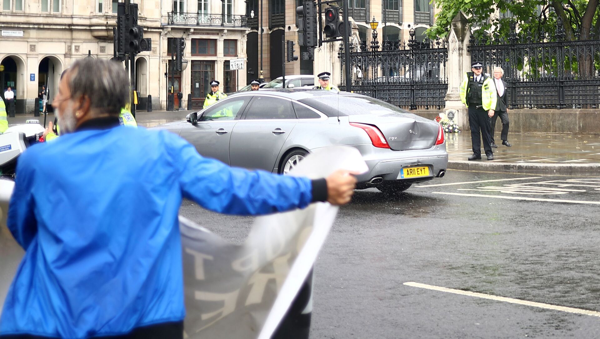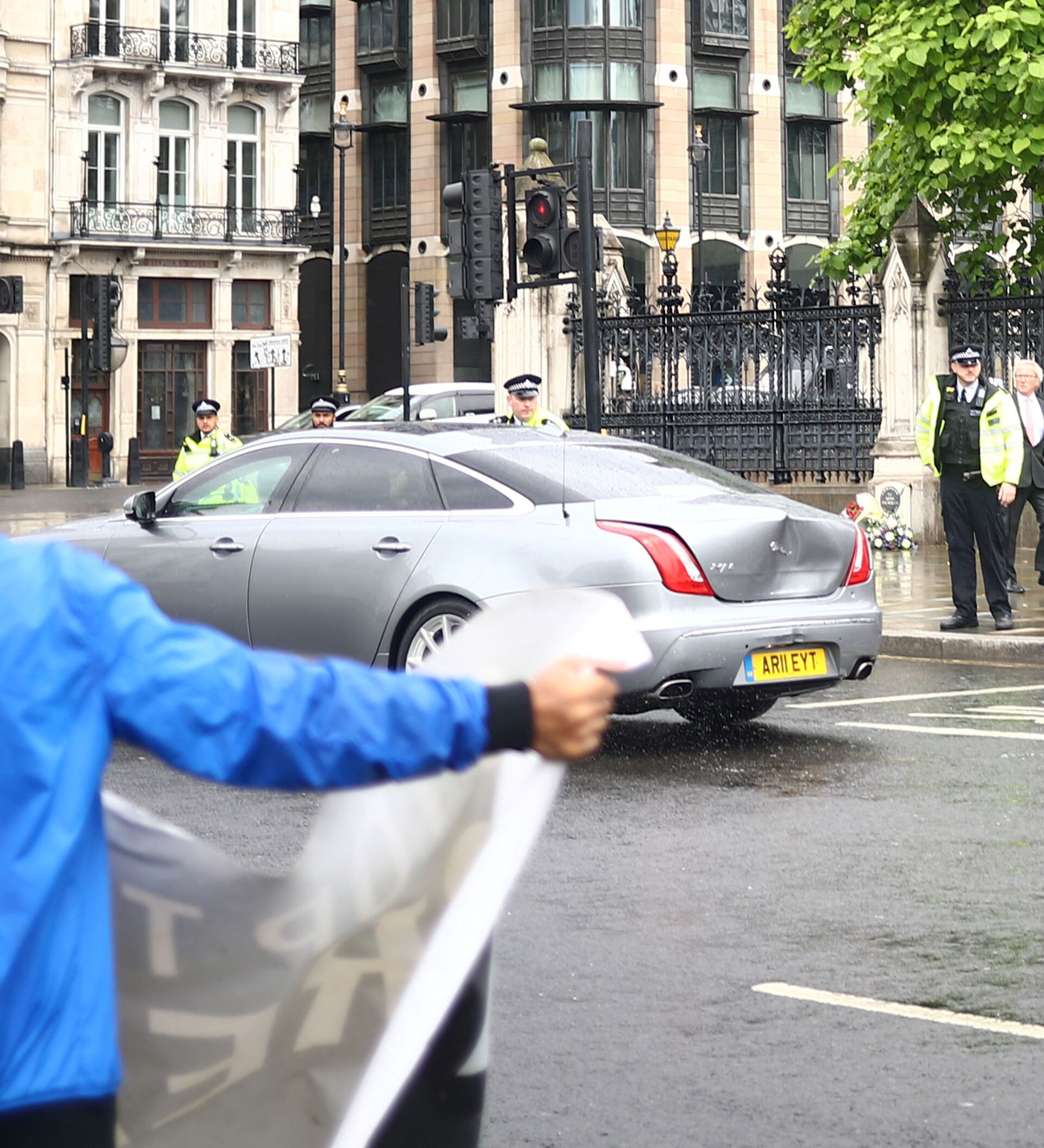 PM Boris Johnson in car crash outside Parliament Square in Westminster when a protester ran out into the road! But thanks God everyone is safe pic.twitter.com/vPq6CXdG2l