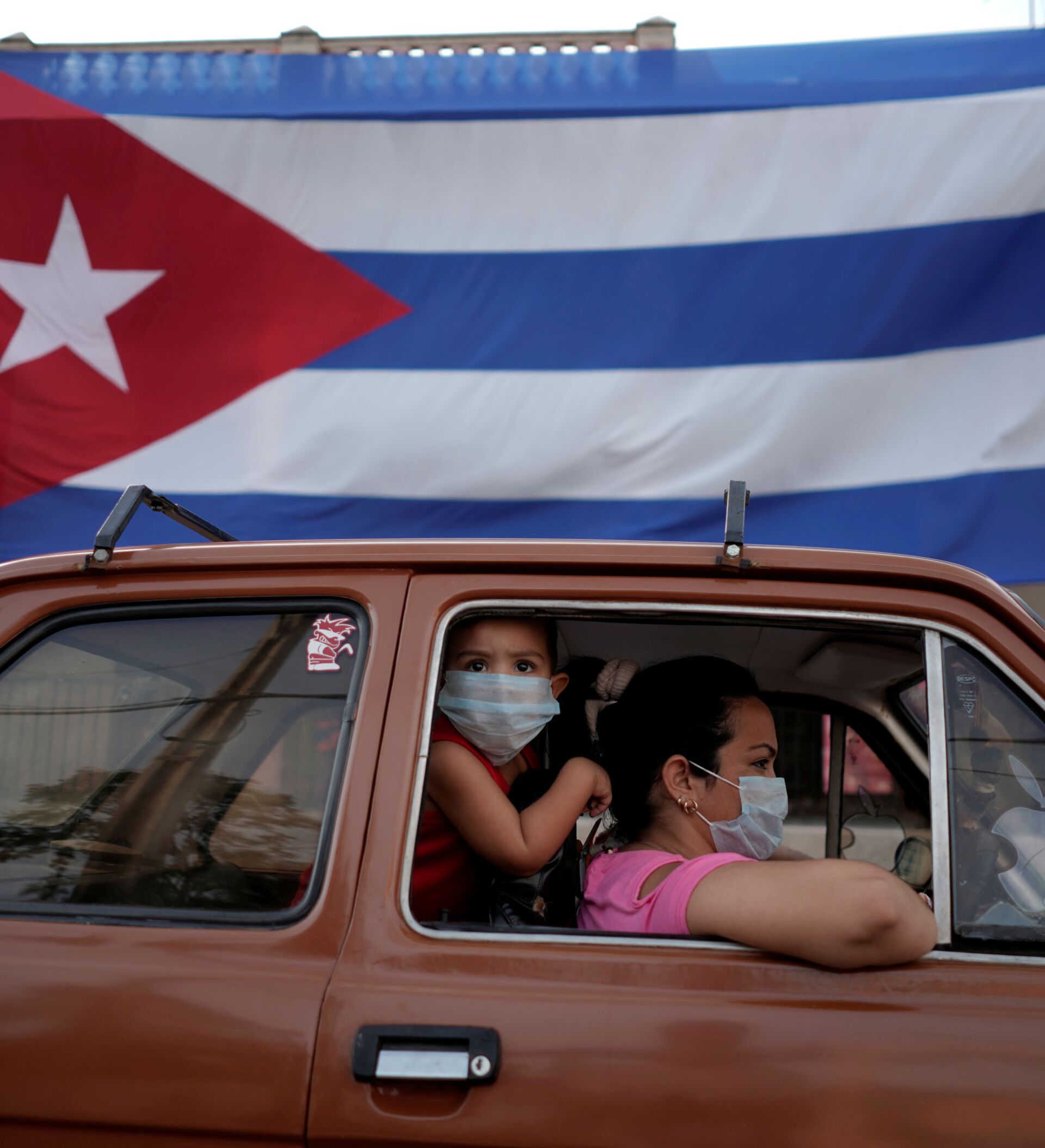 © REUTERS / Alexandre MeneghiniDos persona el un coche y una bandera de Cuba