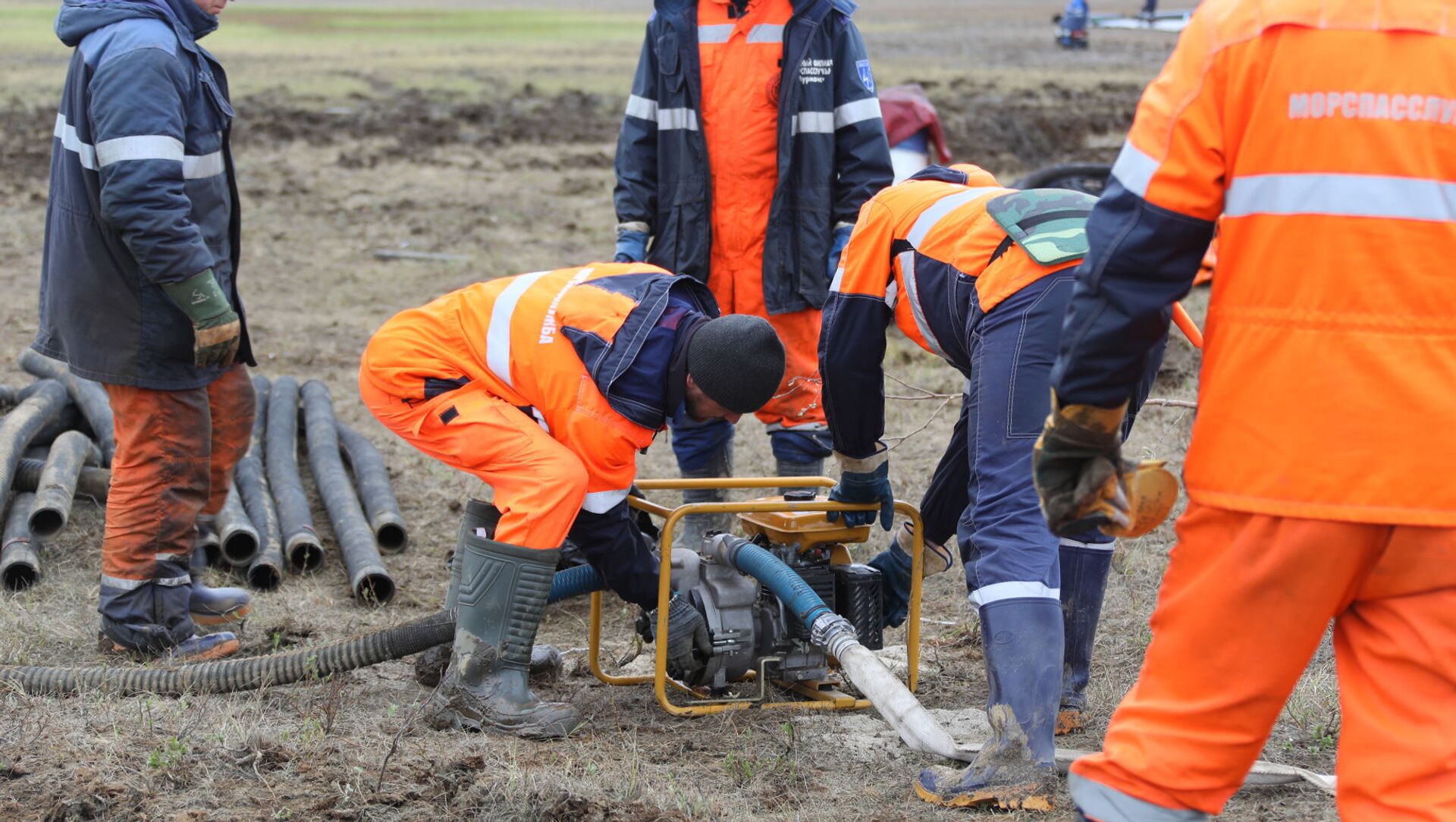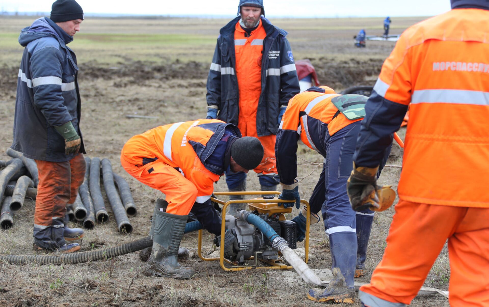 El personal de Emergencias de Rusia en el lugar del derrame en Norilsk - Sputnik Mundo