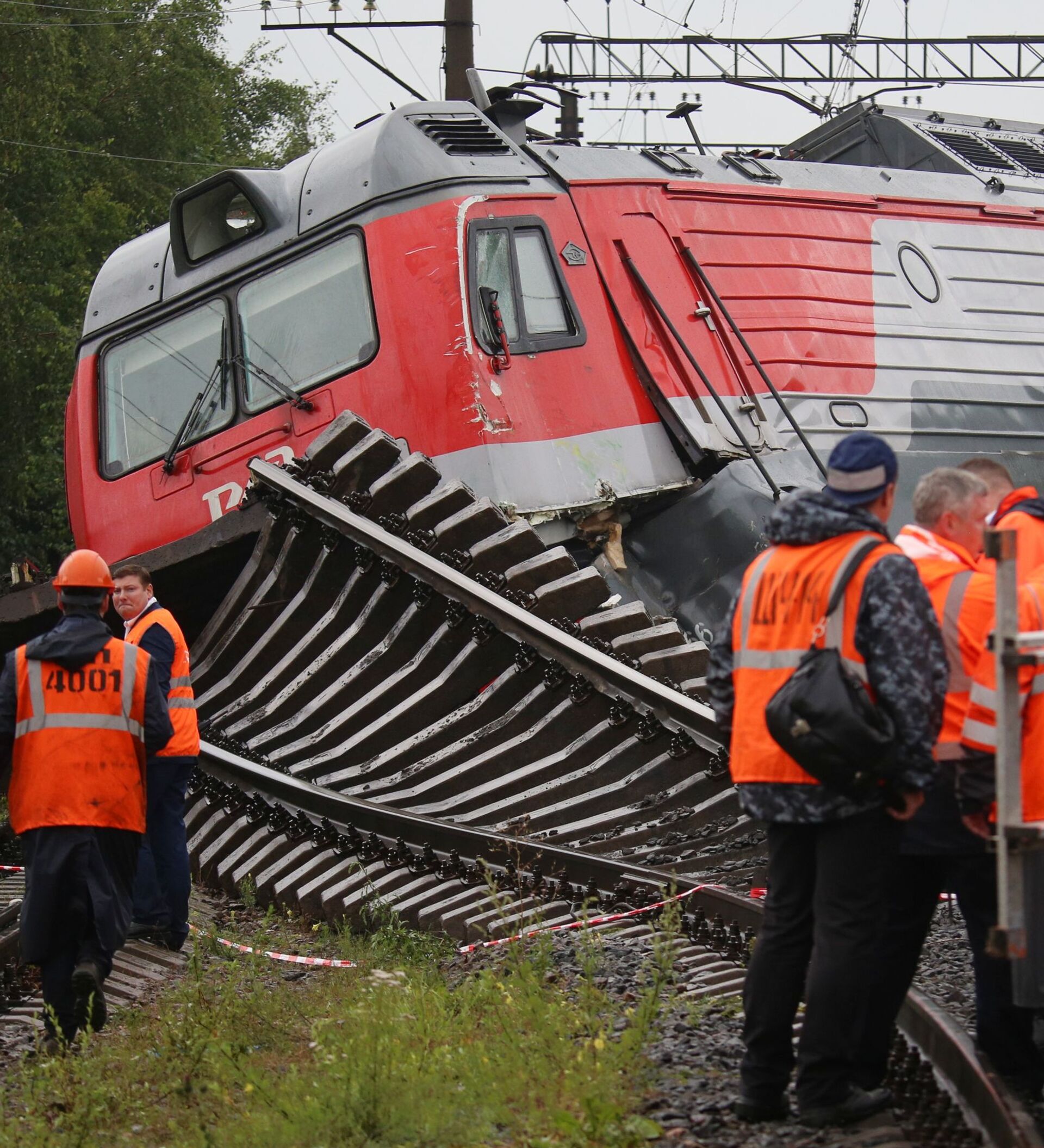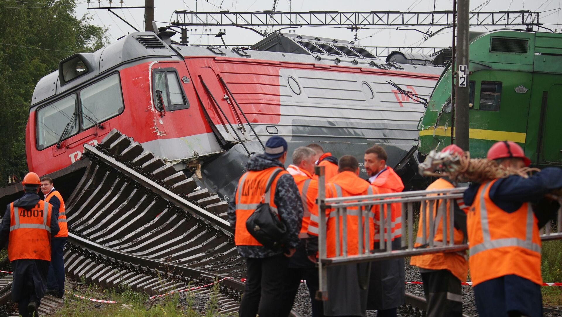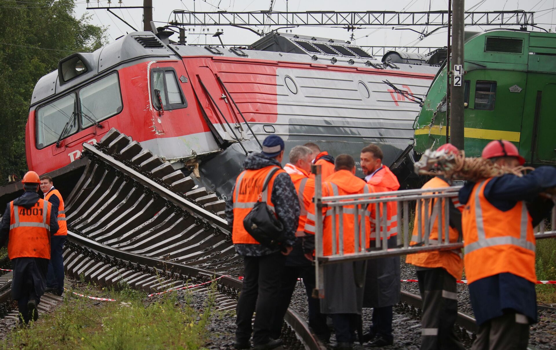 Tres locomotoras eléctricas y un vagón abierto vacío descarrillaron este 28 de julio al chocar dos trenes de carga en las vías férreas de la estación Kupchinskaya en San Peterburgo.
