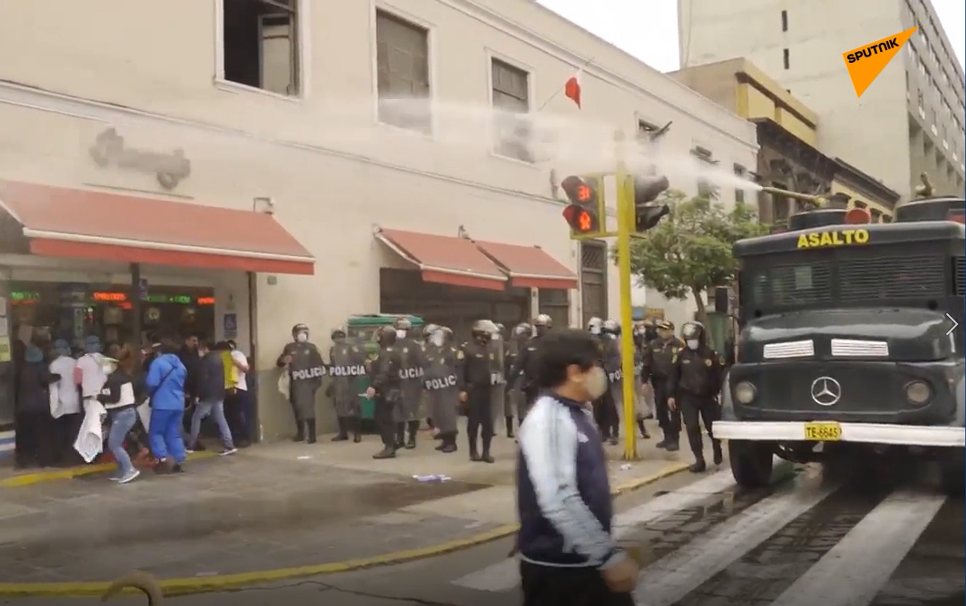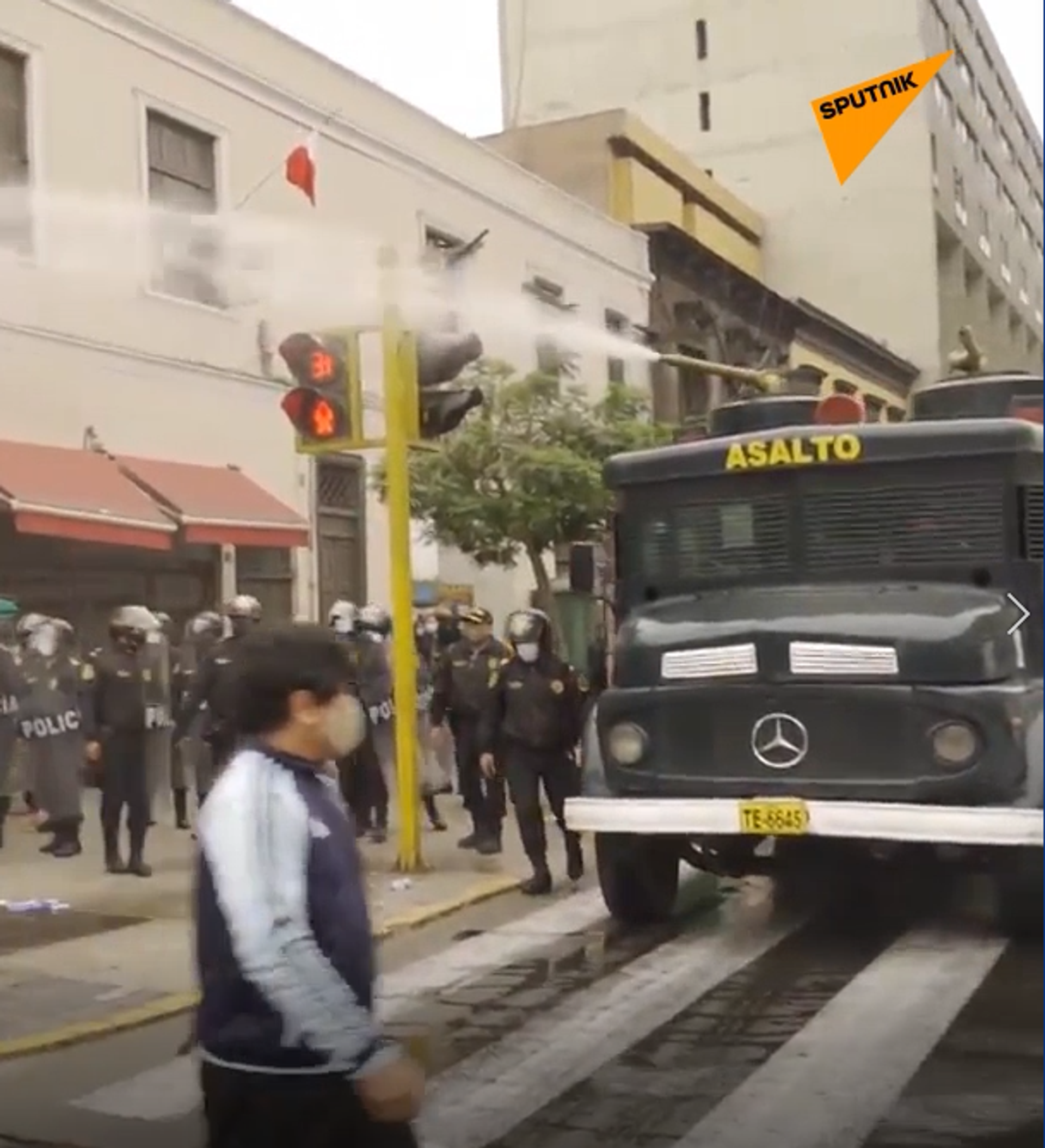 La policía dispersó a la multitud con ayuda de un cañón de agua.