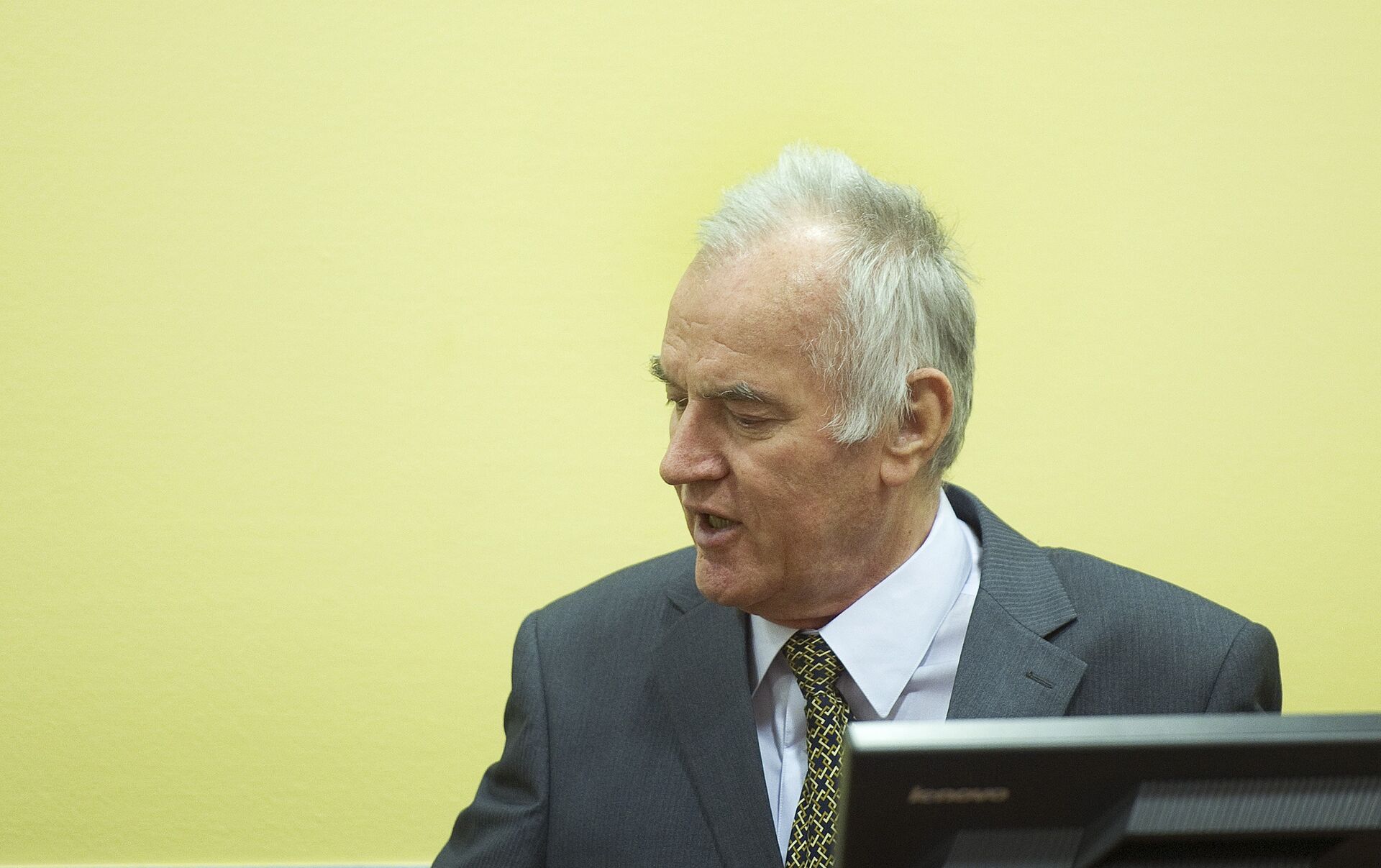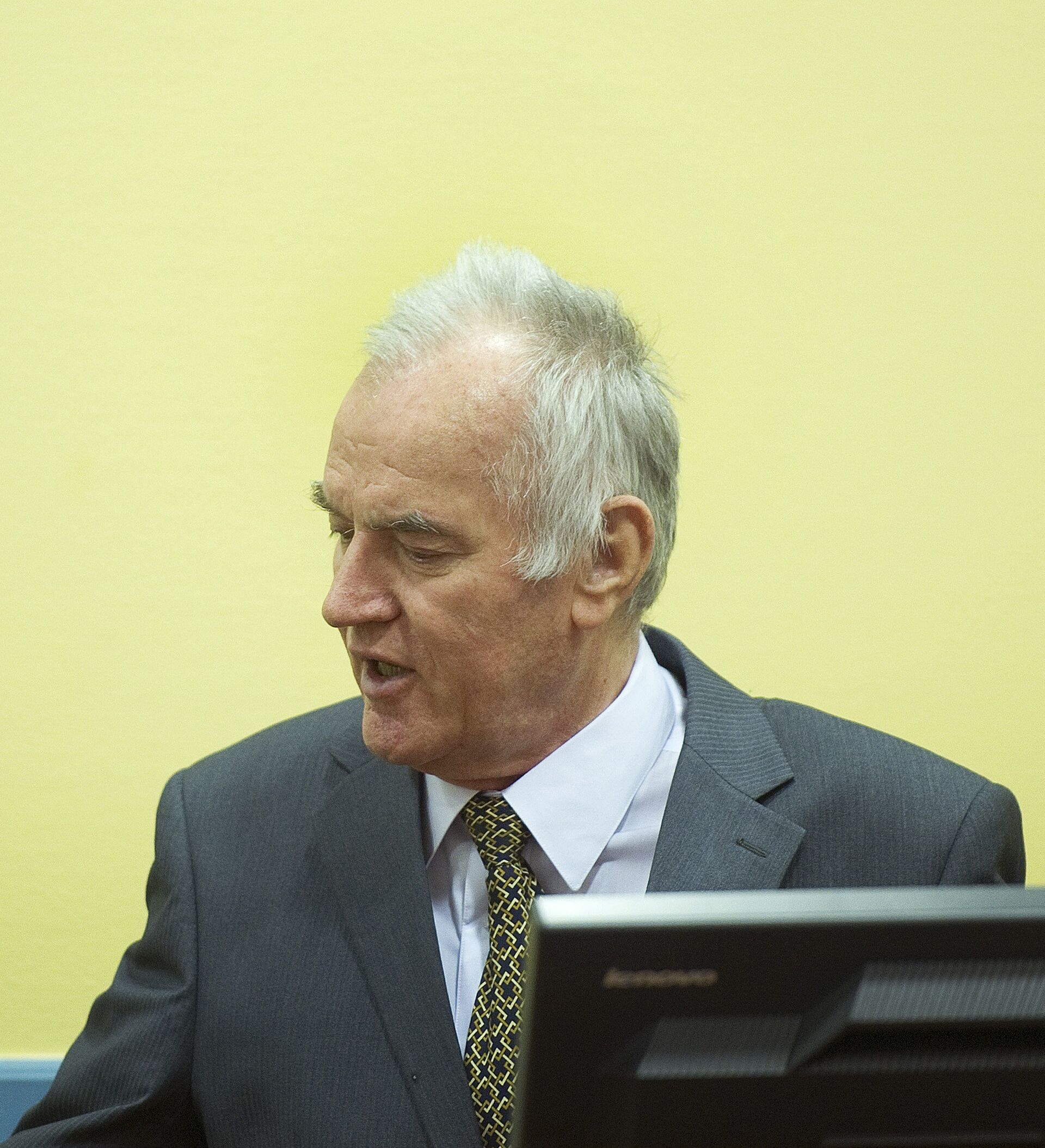 Mladic, de 77 años, observa el proceso desde un compartimiento especial de su prisión, y, aunque se le ve con un corte de pelo reciente y un traje, el acusado no tiene posibilidad de comunicarse a distancia y de manera confiable con su abogado.