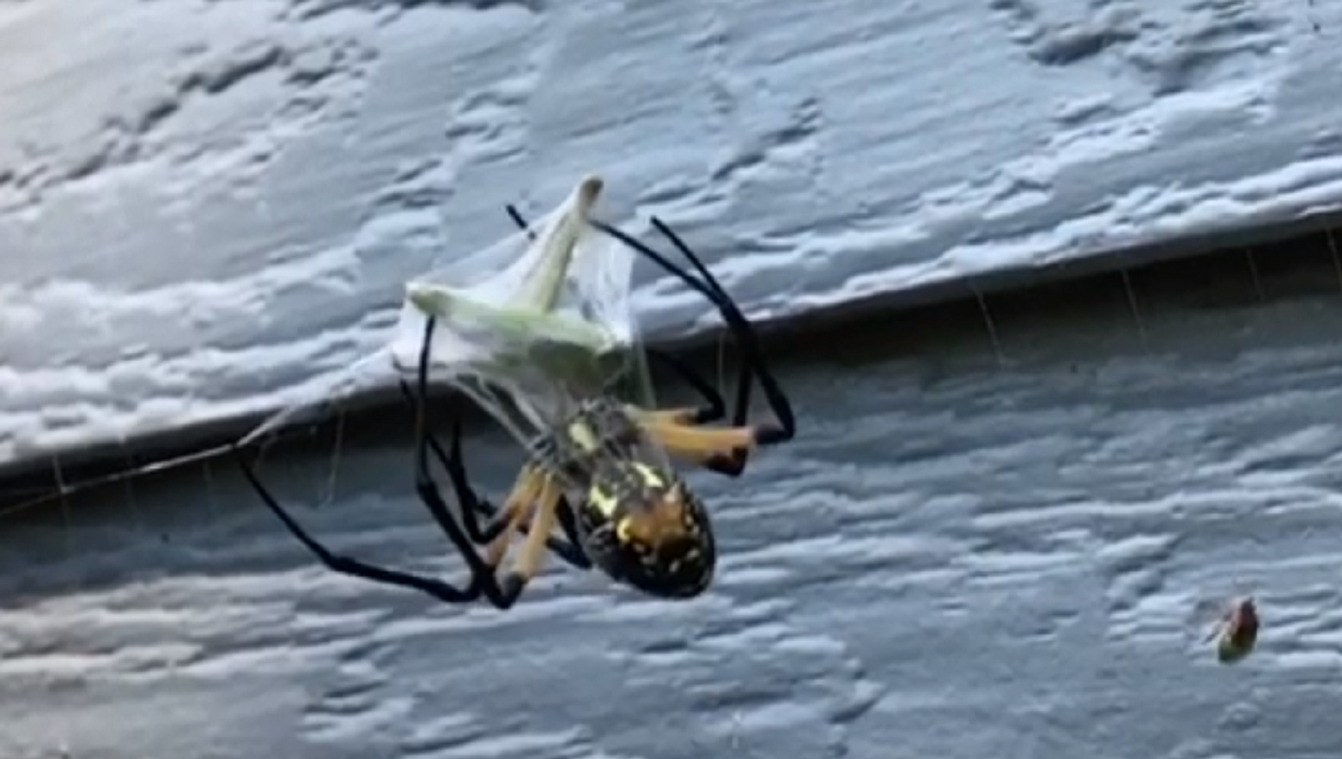 El vídeo se grabó el 30 de agosto en la ciudad de Republic, a cámara lenta, para que se pueda apreciar cada majestuoso movimiento del arácnido, más que experto en la tarea.