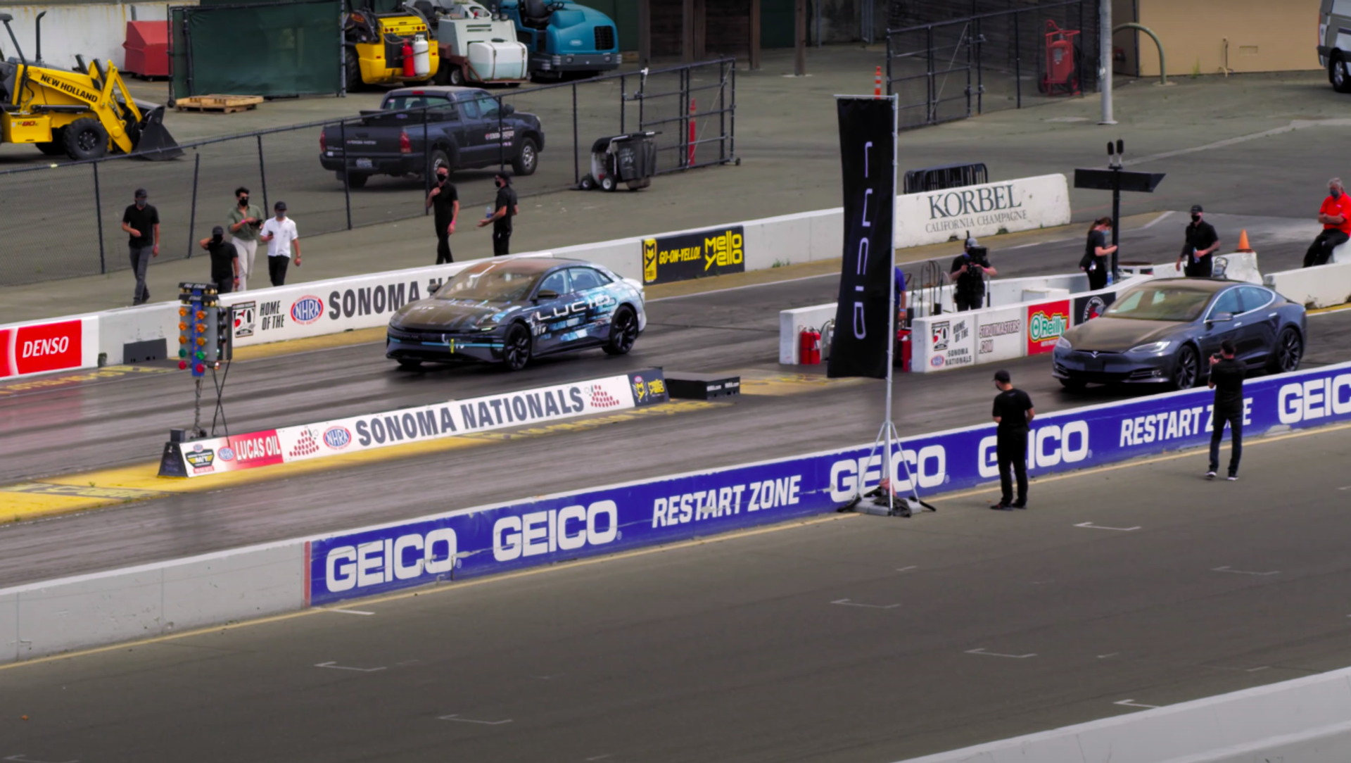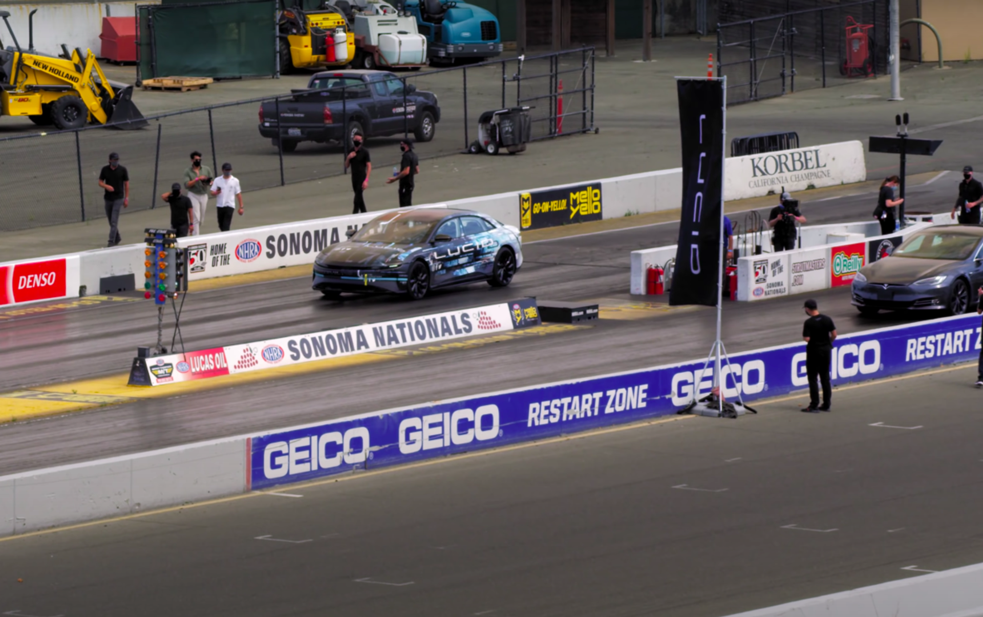 En las imágenes, el Air incluso parece haber corrido contra un vehículo de Tesla, pero Lucid Motors no hizo ninguna mención abierta al concurrente en sus materiales de prensa.