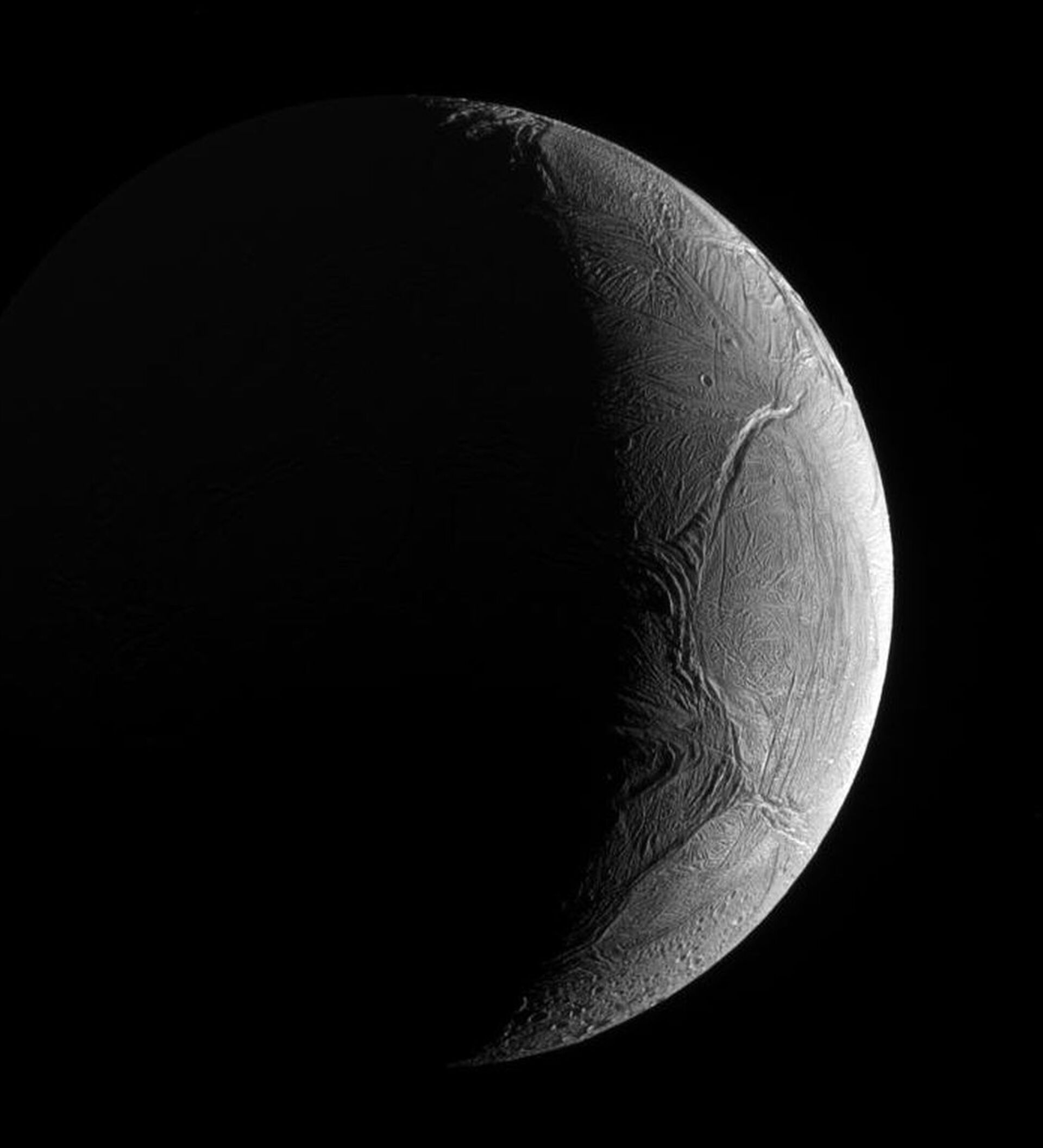 El mapa global infrarrojo de la luna, hecho con datos recopilados por la sonda Cassini, es el más detallado de su tipo jamás creado por la NASA. Según la agencia espacial estadounidense, estas imágenes proporcionan "una fuerte evidencia" de que el hemisferio norte de Encélado ha sido repavimentado con hielo de su interior.