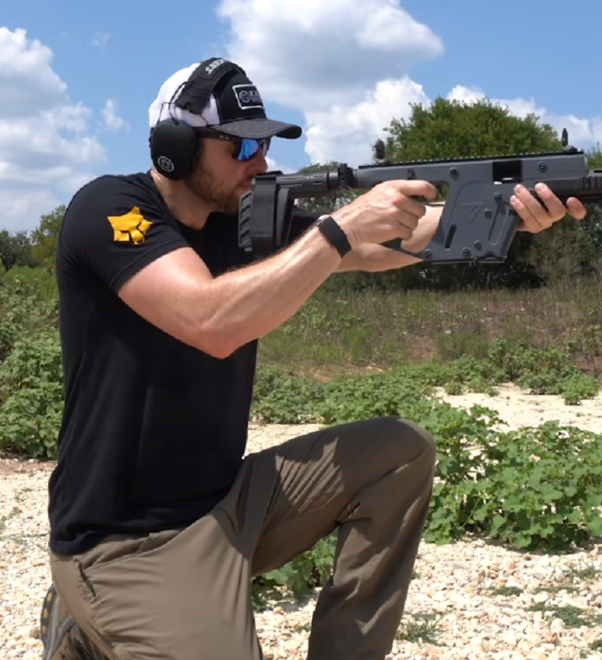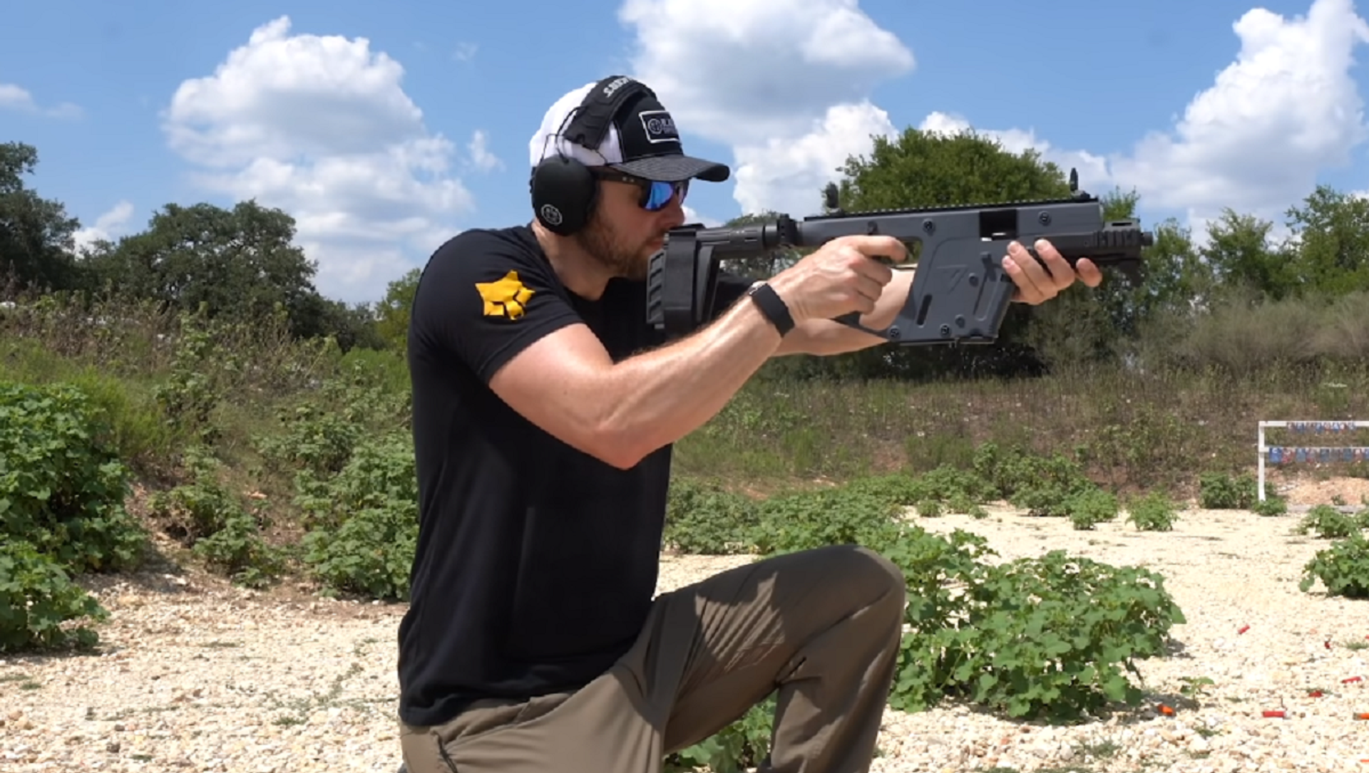 Richard Ryan, productor ejecutivo de la compañía Black Rifle Coffee y aficionado a las armas de fuego, mostró su talento para disparar un subfusil.