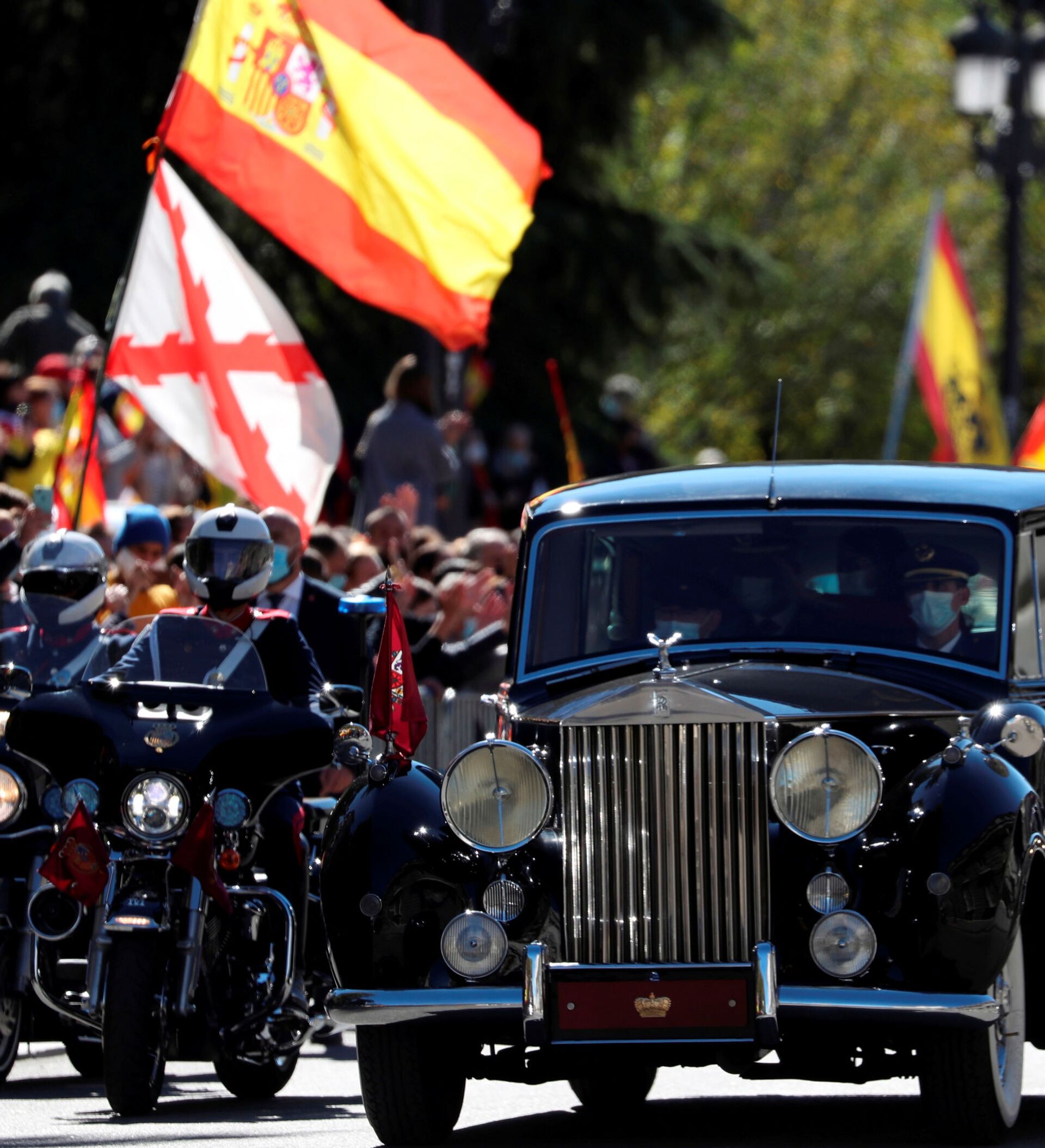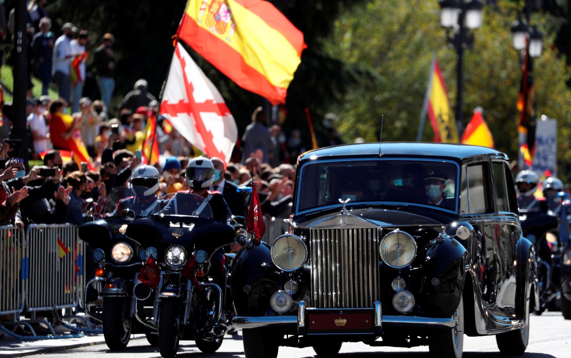 En la plaza de la Armería entre la Catedral de la Almudena y el Palacio Real de Madrid se realizó el acto oficial con motivo del Día de la Hispanidad, en la cual se le rindió un homenaje a las personas que están en primera línea haciendo frente a la segunda ola de coronavirus.