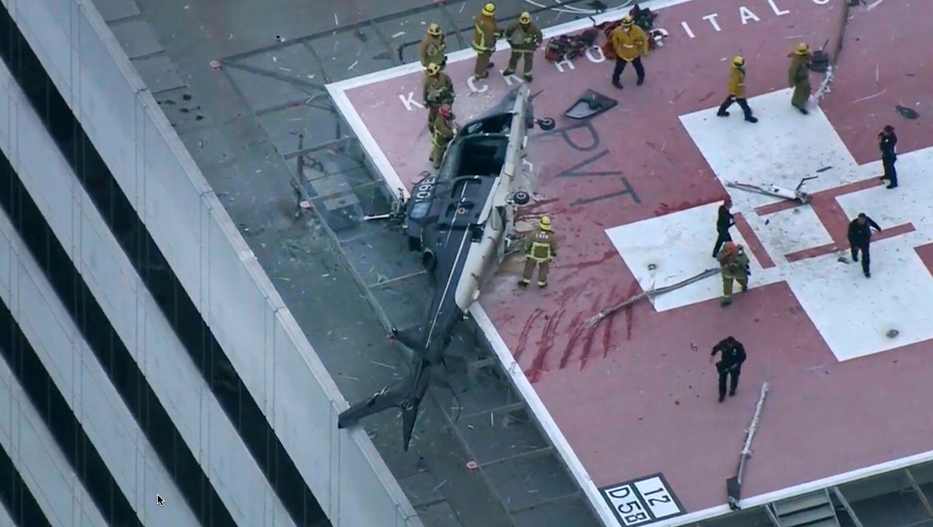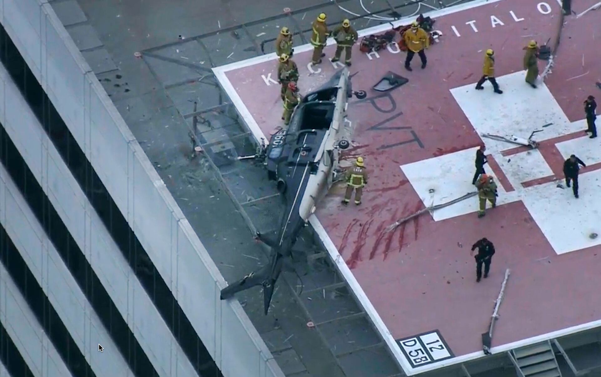 An employee inside the #KeckHospital building where a helicopter crashed on its helipad says he felt the building shake and saw debris flying outside. His coworker shared this video with me. @LAFD says it was transporting a heart. @NBCLA pic.twitter.com/PPEWzOTL6e