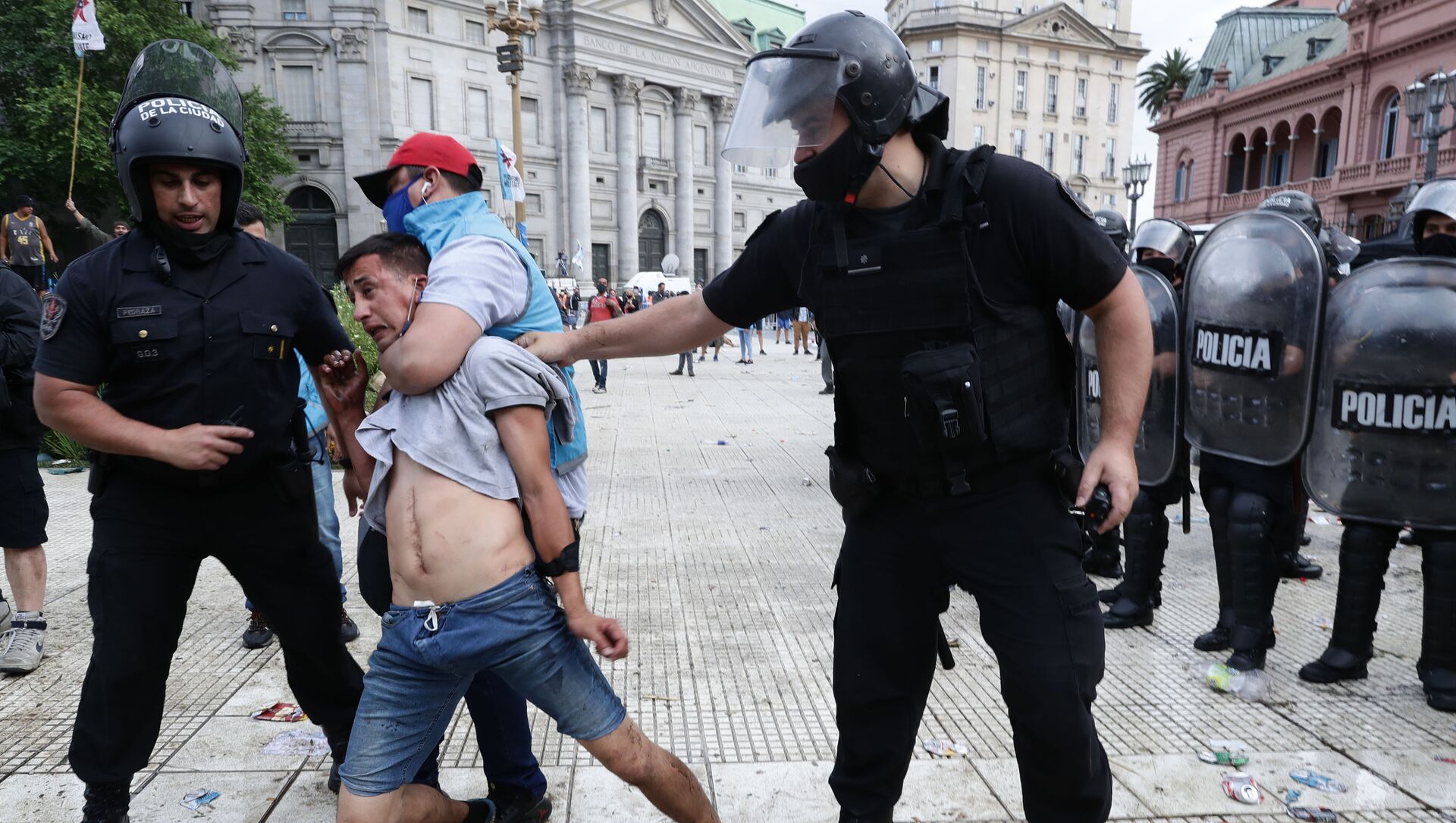 Miles de ciudadanos acuden al velatorio de Diego Armando Maradona. En medio de la espera para poder entrar a la Casa Rosada para despedir a Diego, empujones, corridas y botellazos. @teleamazonasec pic.twitter.com/81WQss6SeN