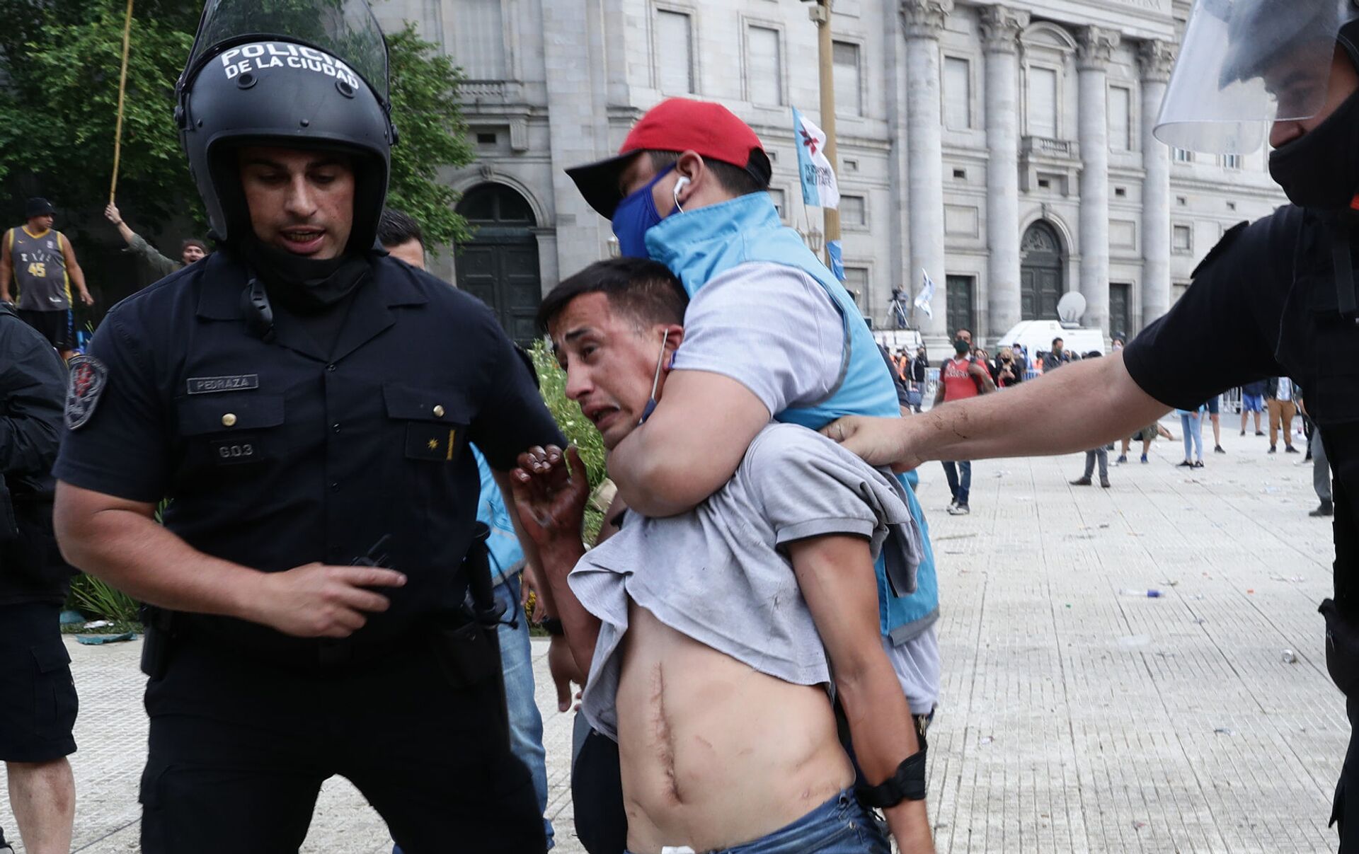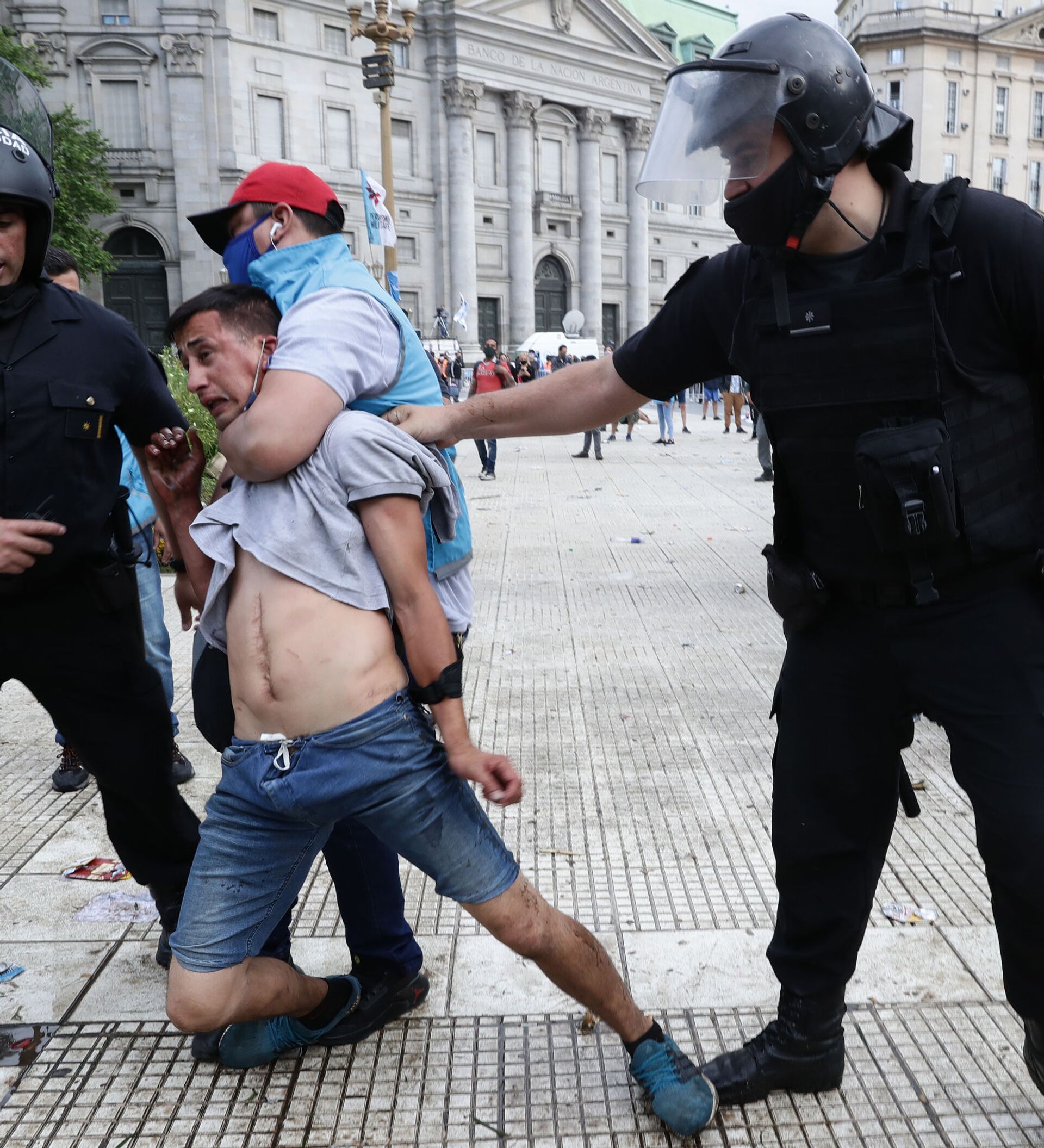 Más tarde se registraron enfrentamientos y disturbios en el centro de la capital argentina después de que la Policía de la ciudad de Buenos Aires cerrara la avenida principal que conduce a la sede de Gobierno.