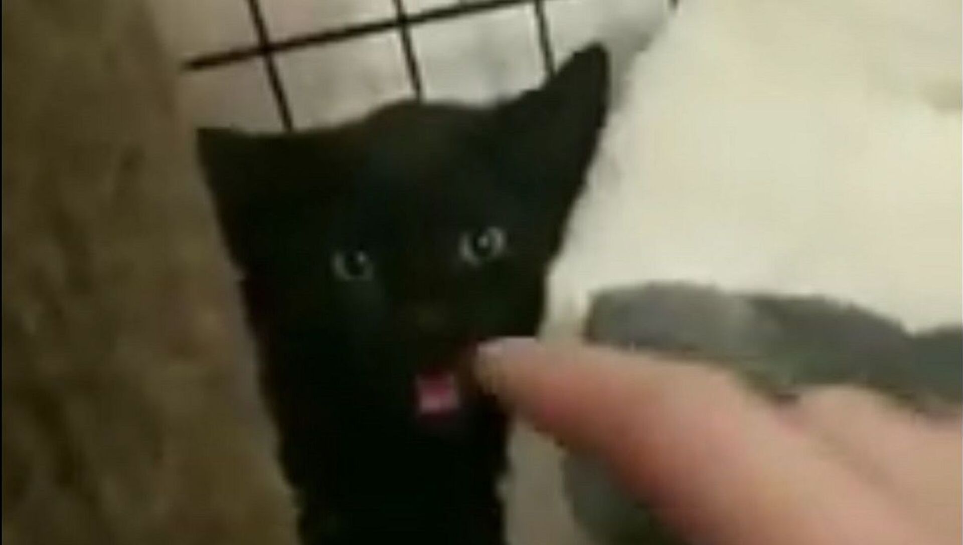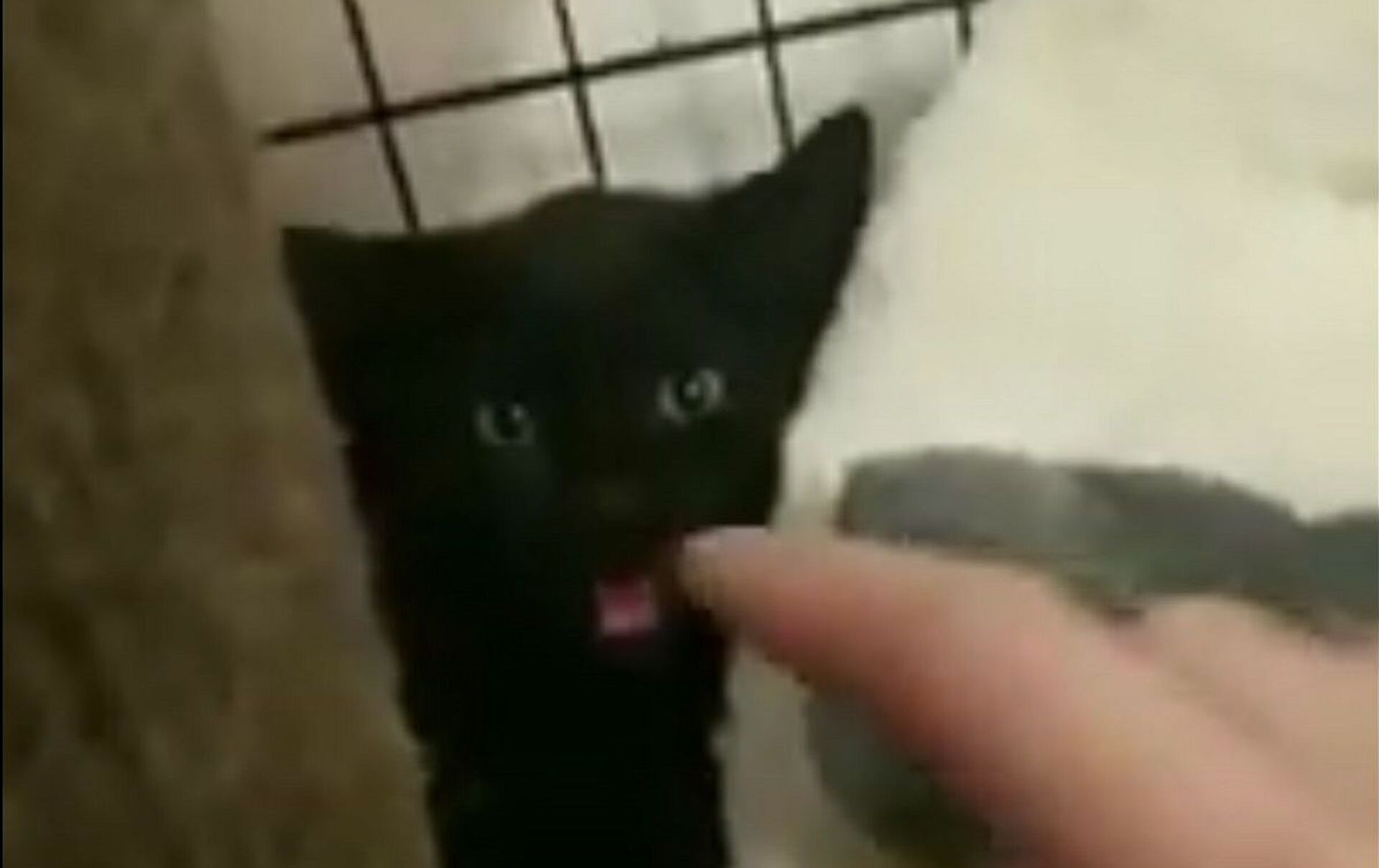 El gato estaba asustado y de repente agarró instintivamente el dedo del autor del vídeo en su boca como chupete, después de lo cual se tranquilizó inmediatamente y se durmió.