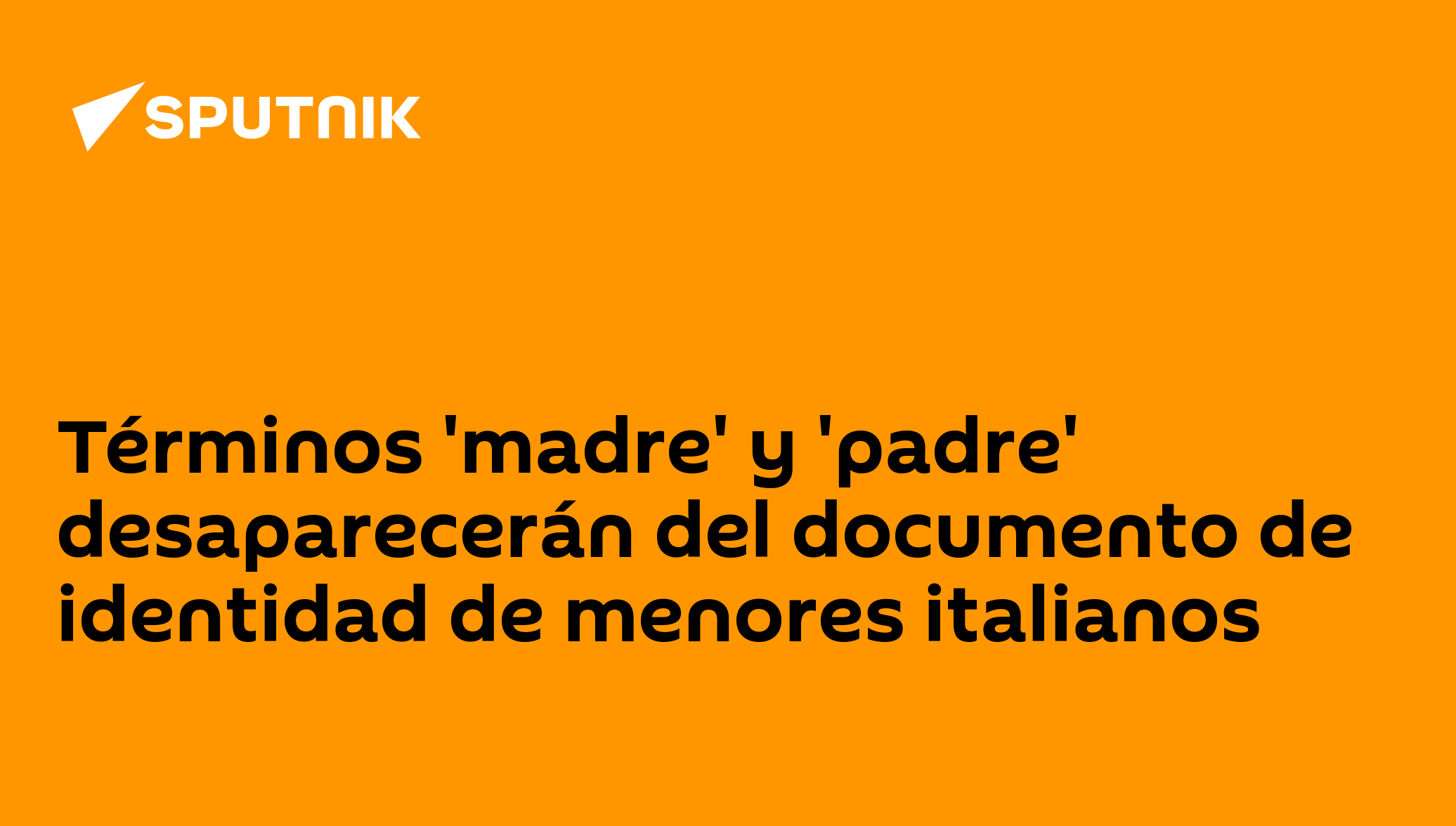 ROMA (Sputnik) — Las autoridades italianas planean eliminar los términos de 'madre' y 'padre' en los documentos de identidad de los menores, declaró la... 13.01.2021, Sputnik Mundo