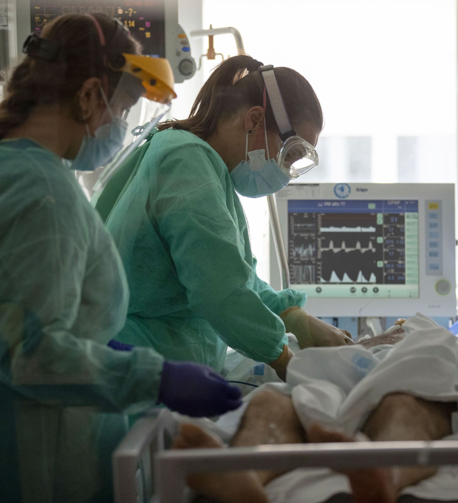 "En la segunda ola también se produjo un aumento importante de ingresos, más lento, más suave, una pendiente constante, pero más horizontal. En esta ocasión estamos viendo cómo el aumento es muy importante. La curva de ingresos está siendo casi vertical, como pasaba en el Reino Unido e Irlanda y, lógicamente, eso es lo que asusta porque si no se para, al ritmo que vamos, en dos semanas podemos estar en una situación de colapso", insiste Ezquerra.