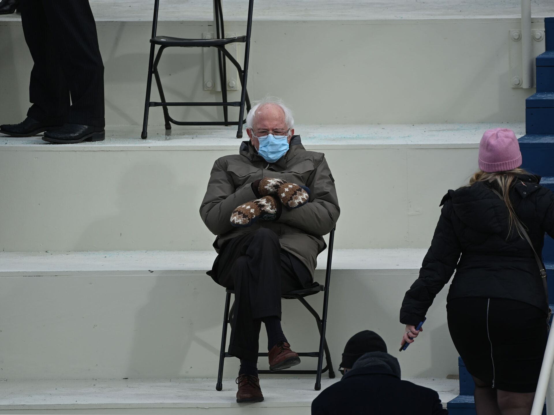 El político utilizó unos guantes tejidos por una maestra de escuela del estado al que representa, Vermont, que le hicieron lucir con unas manos bastante grandes. Esto, junto con una pose que evidenciaba el frío que tenía y la mascarilla correspondiente a esta época de pandemia, crearon una imagen bastante peculiar del senador.