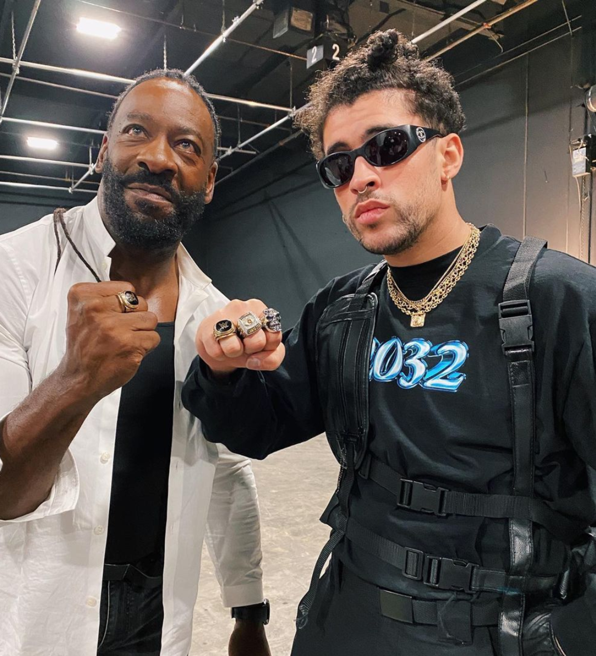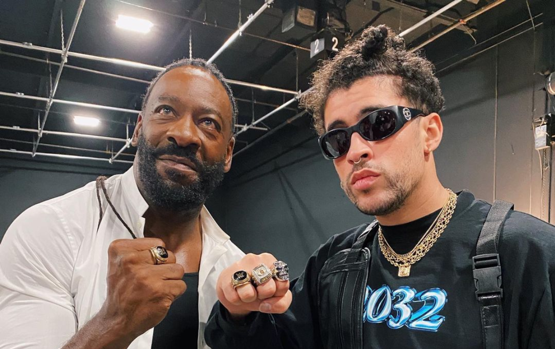 El puertorriqueño también se enfrentó en una batalla improvisada con los luchadores The Miz y John Morrison. En las imágenes virales, se aprecia cómo Bad Bunny realiza un impresionante salto fuera del octágono con el que manda al suelo a los wrestlers.