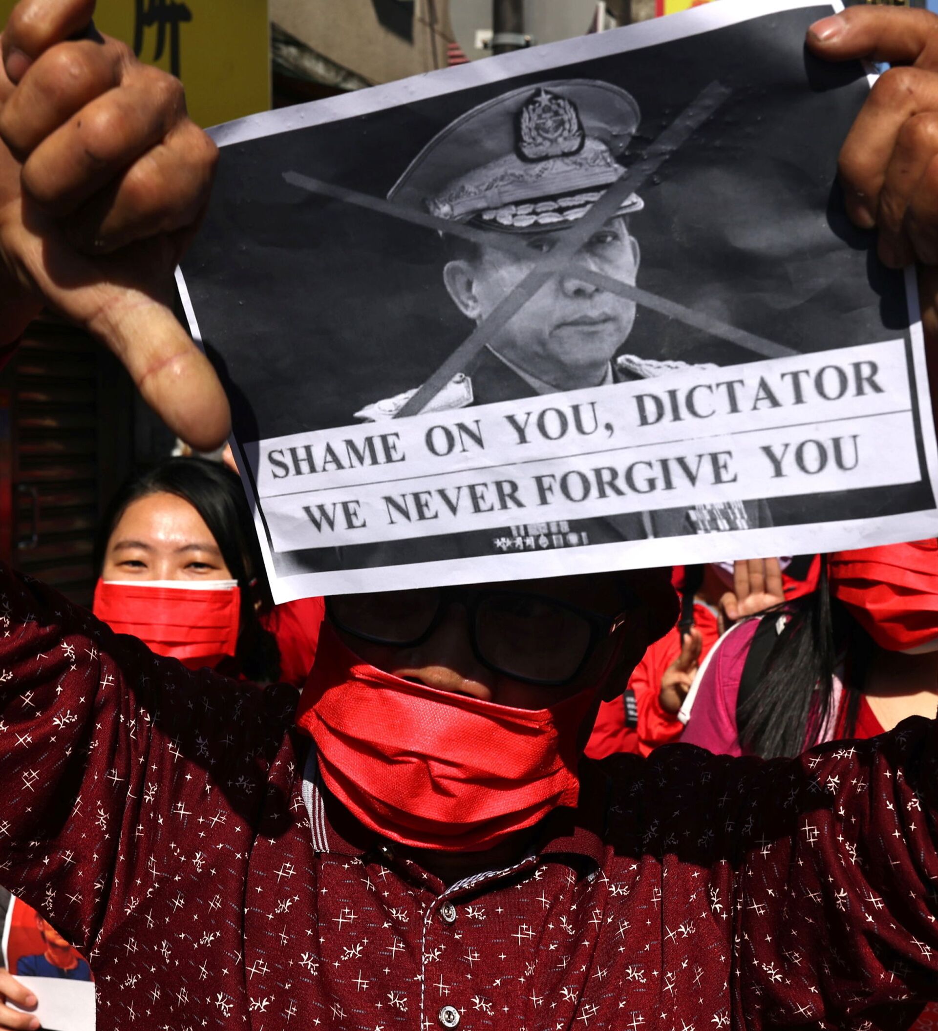 El 1 de febrero, se produjo un golpe militar en Birmania. El poder pasó al Comandante en Jefe de las Fuerzas Armadas, Min Aung Hlaing, y el vicepresidente, Myint Swe, fue nombrado presidente en funciones. En la foto: los manifestantes contra el golpe militar en Birmania en una calle de Rangún.