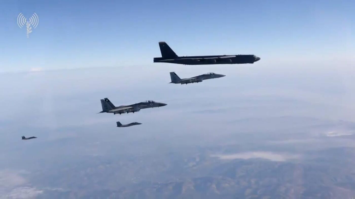 Los cazas F-15 de la Fuerza Aérea de Israel escoltaron a dos bombarderos B-52 estadounidenses mientras sobrevolaban Israel de camino al golfo Pérsico.