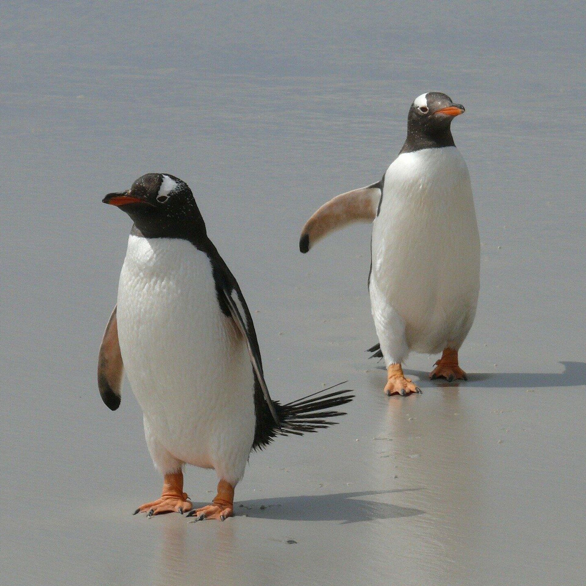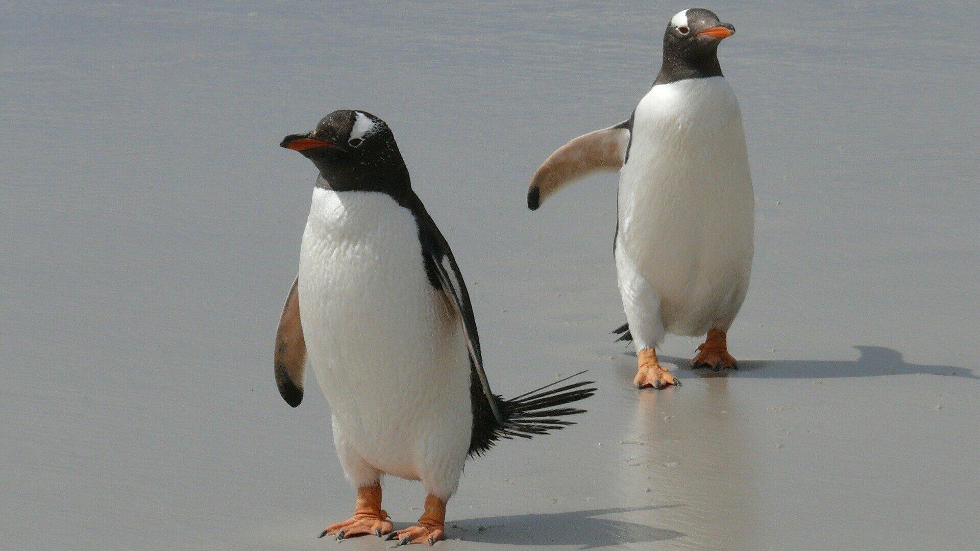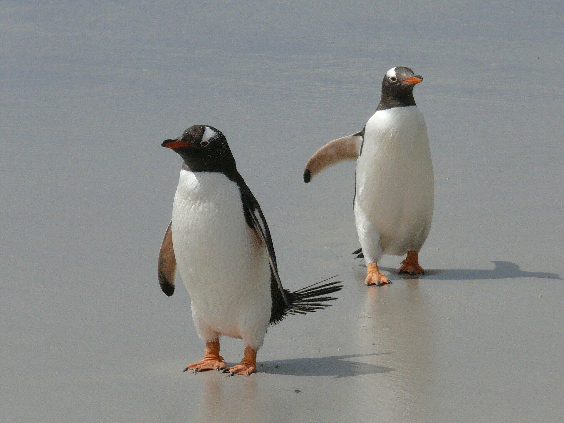 En las imágenes que han sido publicadas por los usuarios de Twitter se puede ver cómo mientras un par de obreros están conversando muy cerca de ellos pasa desapercibido el par de pingüinos.