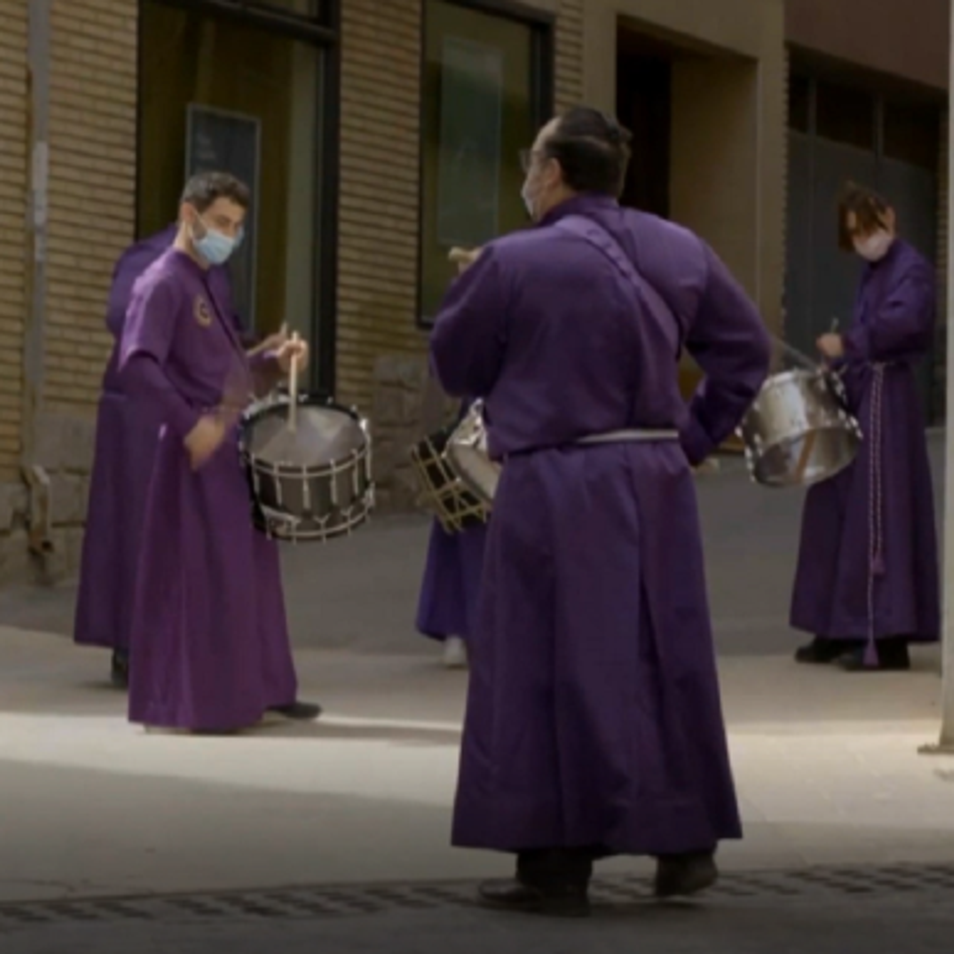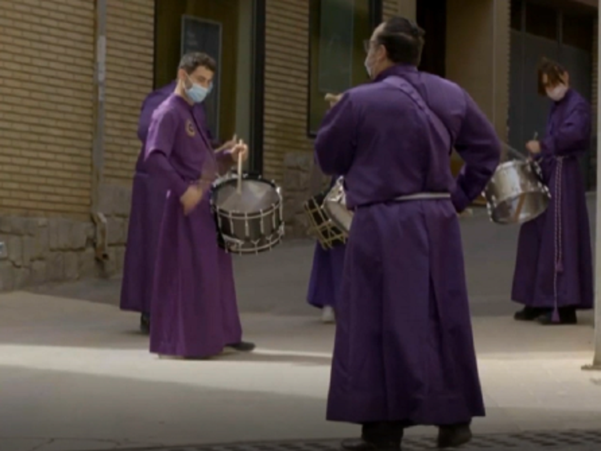Los tradicionales tambores de la Semana Santa se dejan escuchar en España pese a la pandemia