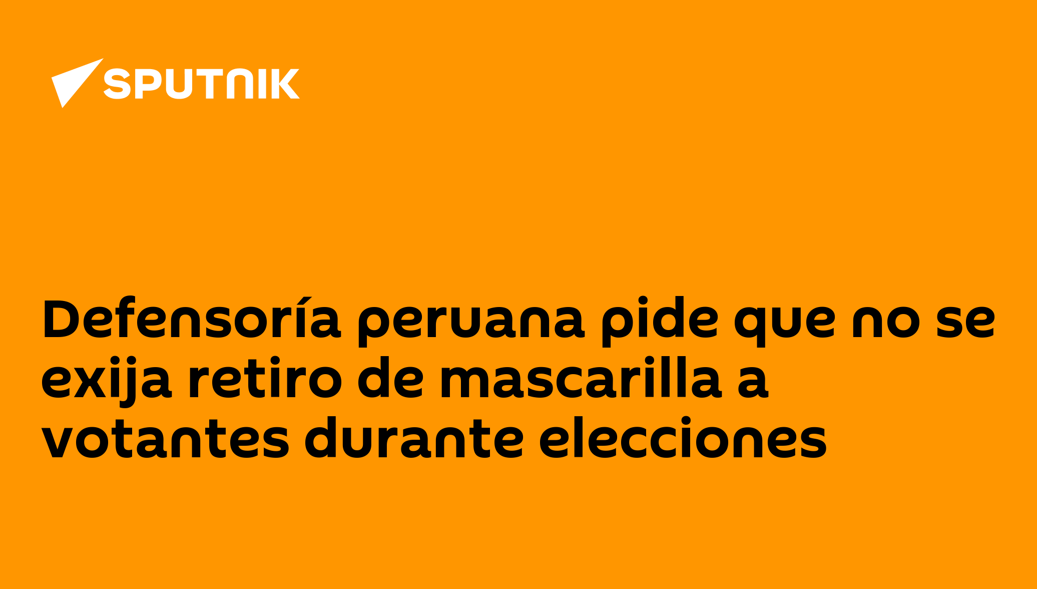 LIMA (Sputnik) — La Defensoría del Pueblo de Perú pidió que la Oficina Nacional de Procesos Electorales (ONPE), encargada de organizar los comicios generales del 11 de abril, que modifique la disposición por la cual se le puede exigir a un votante que se retire la mascarilla en caso hayan dudas sobre su identidad.