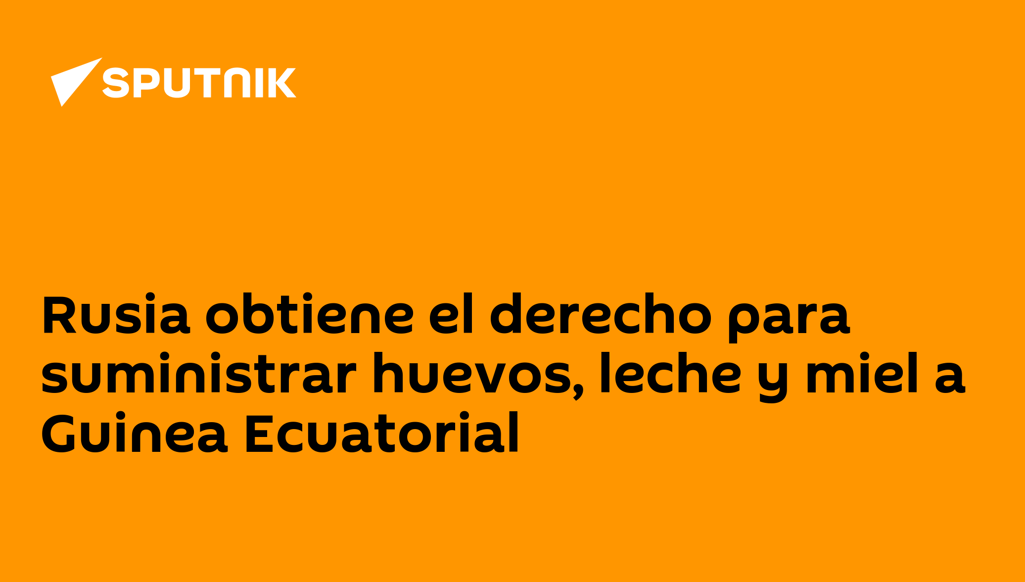 16:55 GMT 28.04.2021 (actualizado: 14:41 GMT 09.08.2021) MOSCÚ (Sputnik) — Rusia obtuvo de Guinea Ecuatorial el derecho de suministrar a este país africano una amplia gama de productos de ganadería, como granos forrajeros, leche, miel, pescado y huevos, comunicó la oficina rusa de control veterinario y fitosanitario (Rosseljoznadzor).