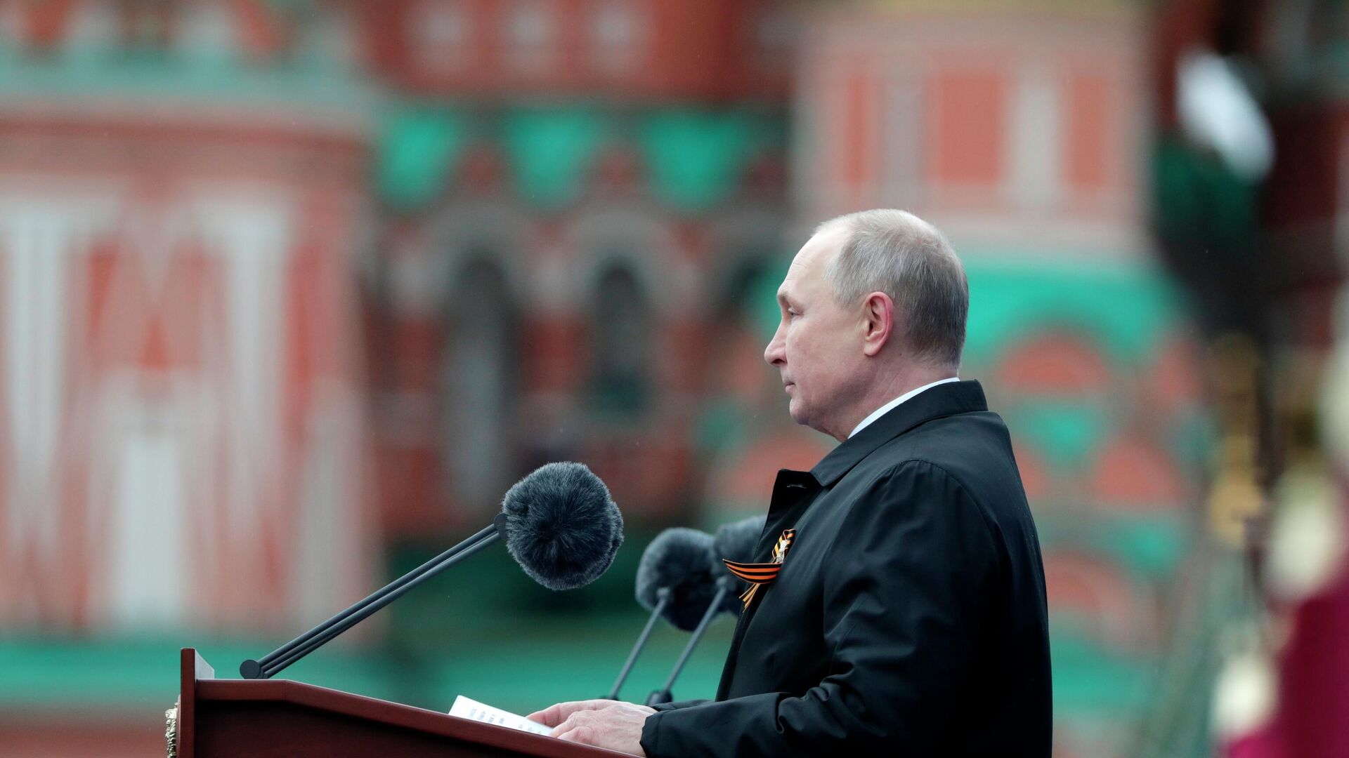 Después de concluido el desfile, el presidente recorrió a pie varios centenares de metros que separan la Plaza Roja del Jardín de Alejandro, al pie de la muralla del Kremlin, para hacer una ofrenda floral en la Tumba del Soldado Desconocido.