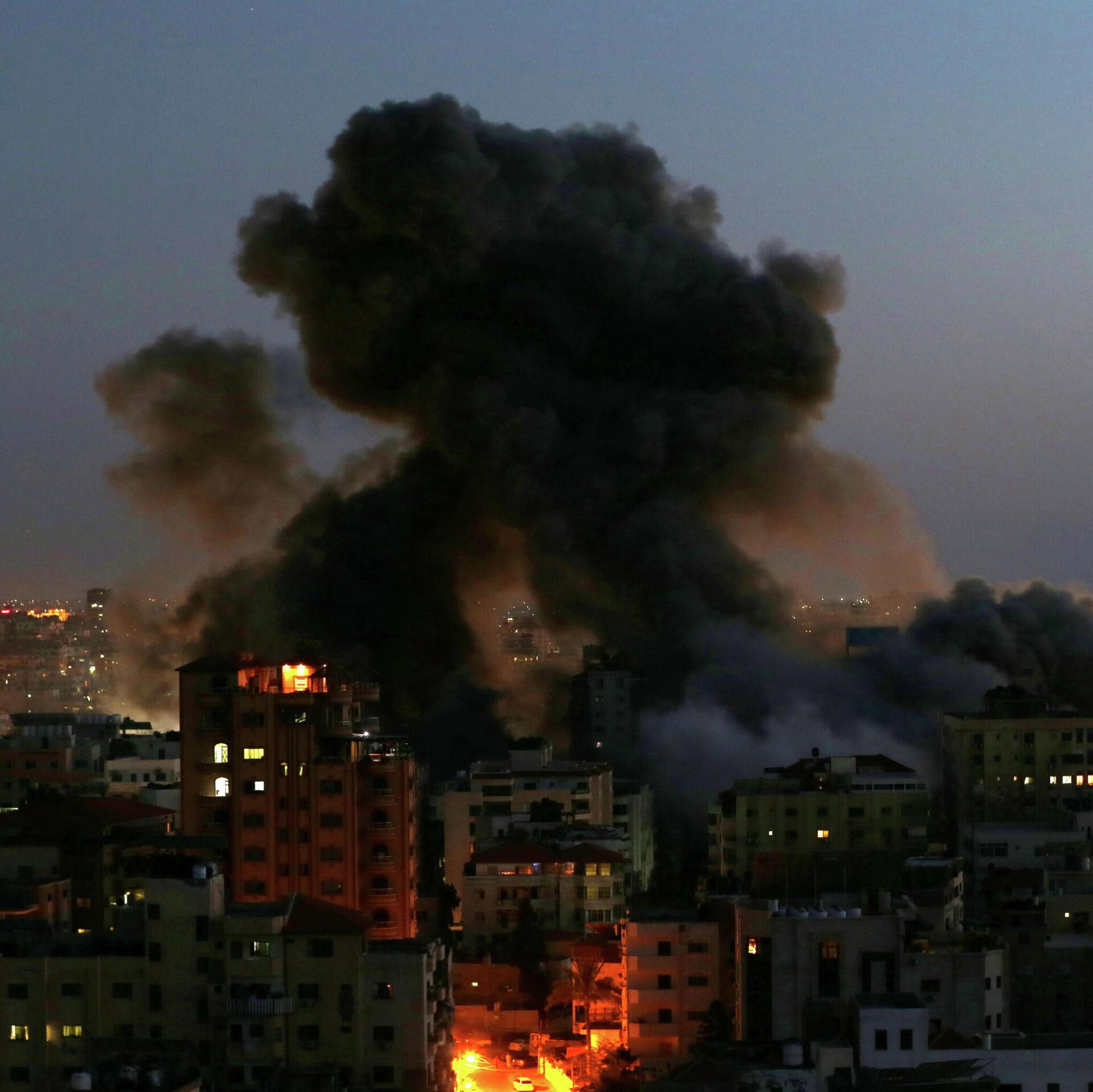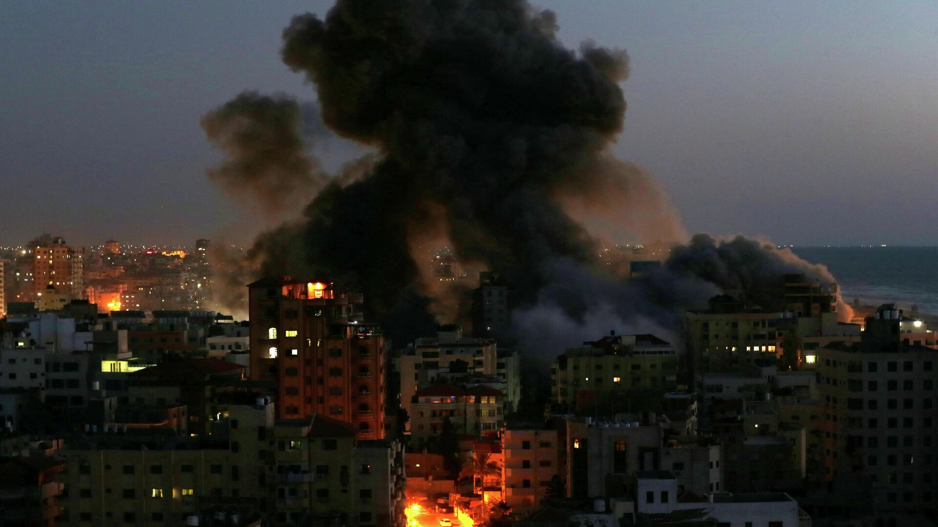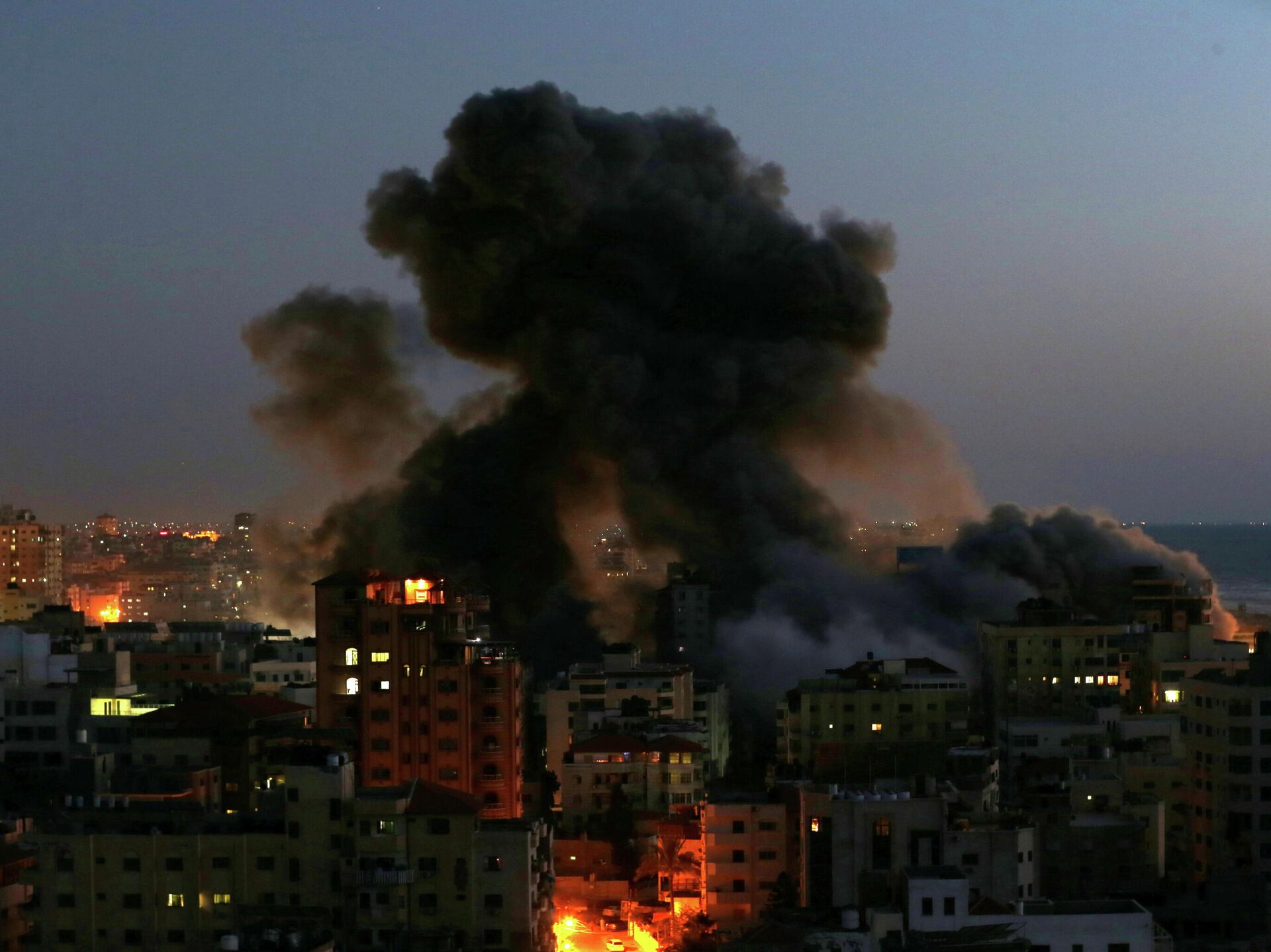 Un edificio de 13 pisos en Gaza ha quedado reducido a cenizas tras ser alcanzado por los ataques de misiles de aviones de guerra israelíes.