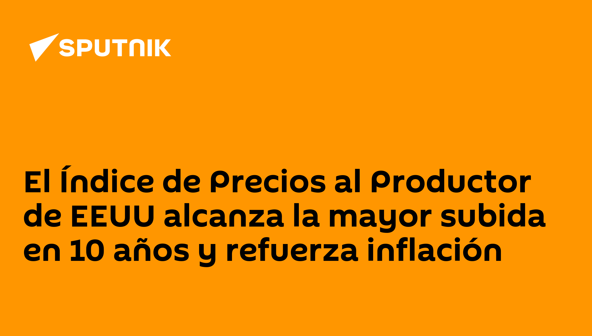 18:00 GMT 13.05.2021 (actualizado: 18:09 GMT 13.05.2021) El Índice de Precios al Productor de EEUU, una medida para establecer lo que pagan los mayoristas por bienes, alcanzó su mayor subida en una década durante el año cerrado a abril, dijo el Departamento de Trabajo, lo que revela otro indicador de la elevada inflación en una economía que se recupera rápidamente de la crisis del COVID.