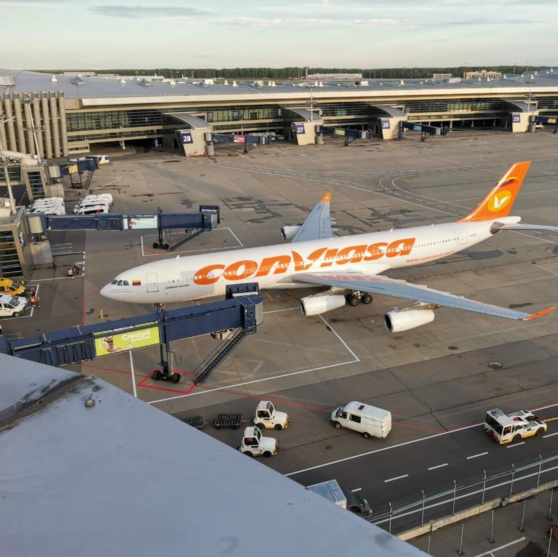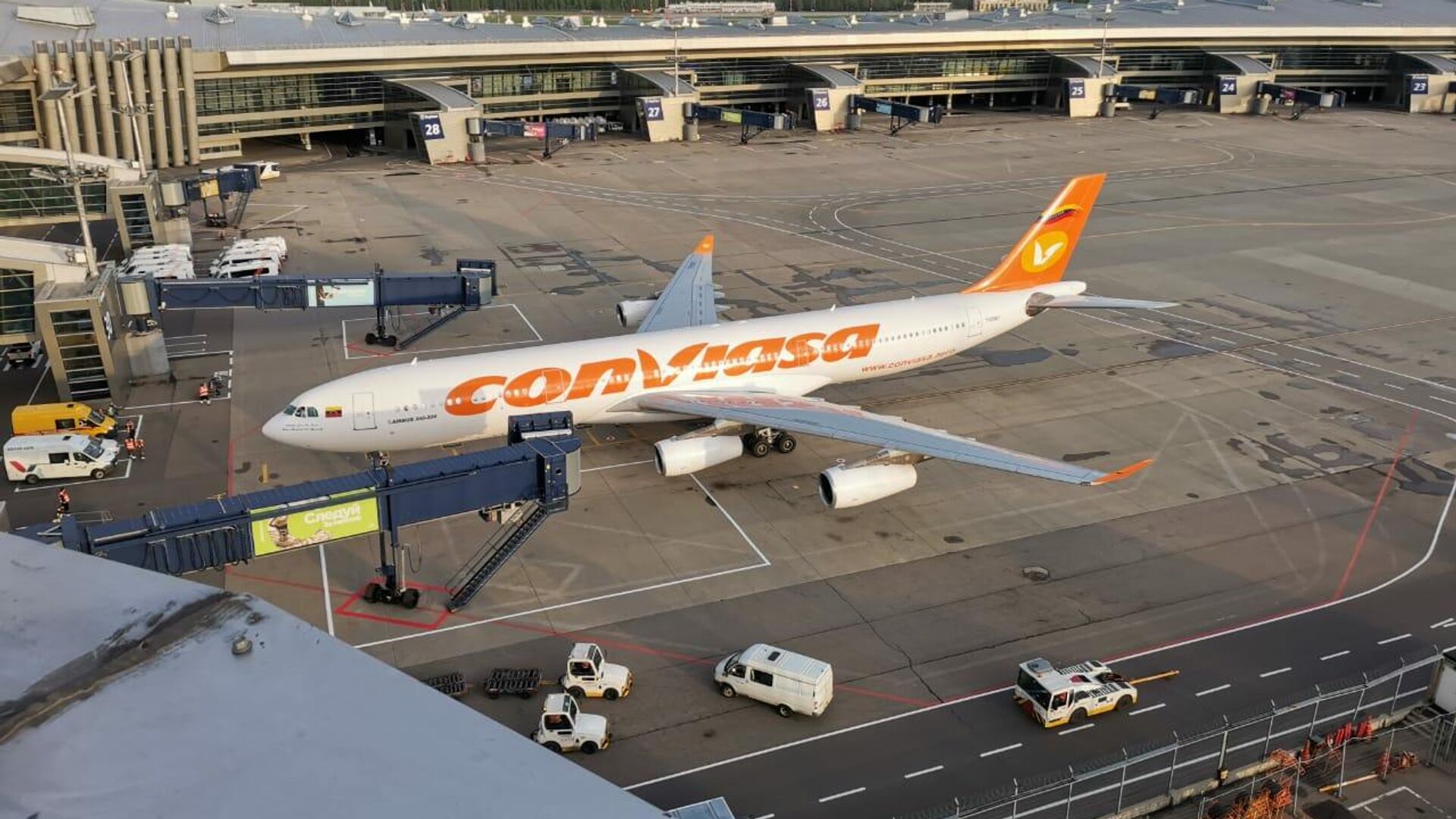 El vuelo fue organizado por la aerolínea estatal venezolana Conviasa y en este arribaron varios funcionarios del Gobierno venezolano, entre ellos el ministro de Turismo, Alí Ernesto Padrón Paredes, el vicecanciller para Europa, Yván Eduardo Gil Pinto, el presidente del lnstituto Nacional de Aeronáutica Civil, Juan Manuel Teixeira Díaz, y el vicepresidente de Conviasa, José Gregorio Márquez Ramírez.La delegación venezolana fue recibida por el embajador del país sudamericano en Rusia, Carlos Rafael Faría Tortosa.La parte rusa estuvo representada por el director del departamento de América Latina del Ministerio de Exteriores de Rusia, Alexandr Schetinin, el embajador ruso en Caracas, Serguéi Melik-Bagdasarov, el presidente de la Agencia Federal de Transporte Aéreo, Alexandr Neradko, la jefa adjunta de la Agencia Federal de Turismo, Elena Lisenkova, y el subdirector general para comercio del aeropuerto de Vnúkovo, Antón Kuznetsov.El ministro de Turismo de Venezuela, Alí Ernesto Padrón Paredes, destacó la apertura del vuelo directo entre Moscú y Caracas y aseguró que es de una importancia estratégica para Rusia y Venezuela.Esta nueva ruta, aseguró, "incrementará las ya profundas relaciones entre la Federación de Rusia y el Gobierno de la República Bolivariana de Venezuela".Además, continuó, incrementará el nivel de carga y la posibilidad de visitas directas de turistas.Destacó que la apertura de la nueva ruta, que calificó de "un gran suceso", se hizo posible "en medio de la pandemia, en medio de las medidas coercitivas unilaterales y bloqueo económico que ha afectado a Venezuela y a Rusia"."Estamos aquí para celebrarlo", manifestó.El pasado 3 de mayo arribó a Caracas el primer vuelo desde Moscú, con 90 operadores turísticos rusos, quienes durante dos semanas visitaron diferentes destinos en el país sudamericano.Con esta ruta, el Gobierno busca incrementar el intercambio comercial entre Rusia y Venezuela.Según informó en un comunicado el servicio de prensa de Vnúkovo, al avión de Conviasa le dieron la bienvenida con un arco de agua.La delegación venezolana fue recibida con flores, además los distinguidos invitados cortaron la cinta roja dando con este símbolo el inicio de vuelos regulares de Conviasa desde Vnúkovo.Neradko, según la nota, felicitó a todos con motivo del inicio de vuelos regulares de Caracas.El vuelo regular directo, según Neradko, que durará 13 horas, permitirá a los turistas rusas ver las principales atracciones de Venezuela como la cascada de agua Salto Ángel y el archipiélago Los Roques, entre otras.Está previsto que los vuelos regulares Caracas-Moscú-Caracas se realicen una vez cada dos semanas, luego se prevé elevarlos hasta dos por semana.