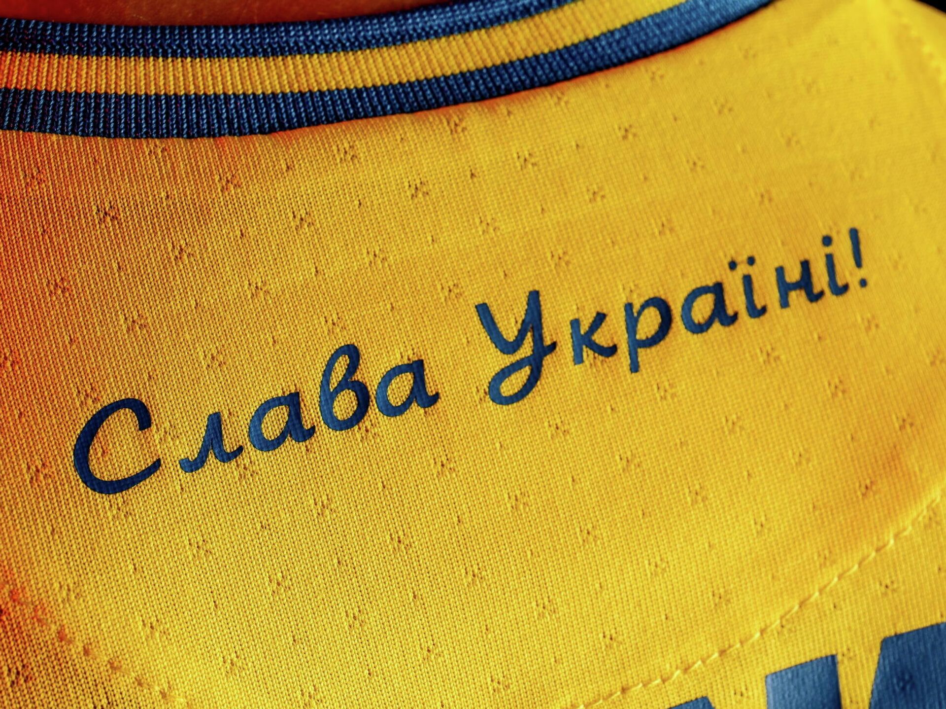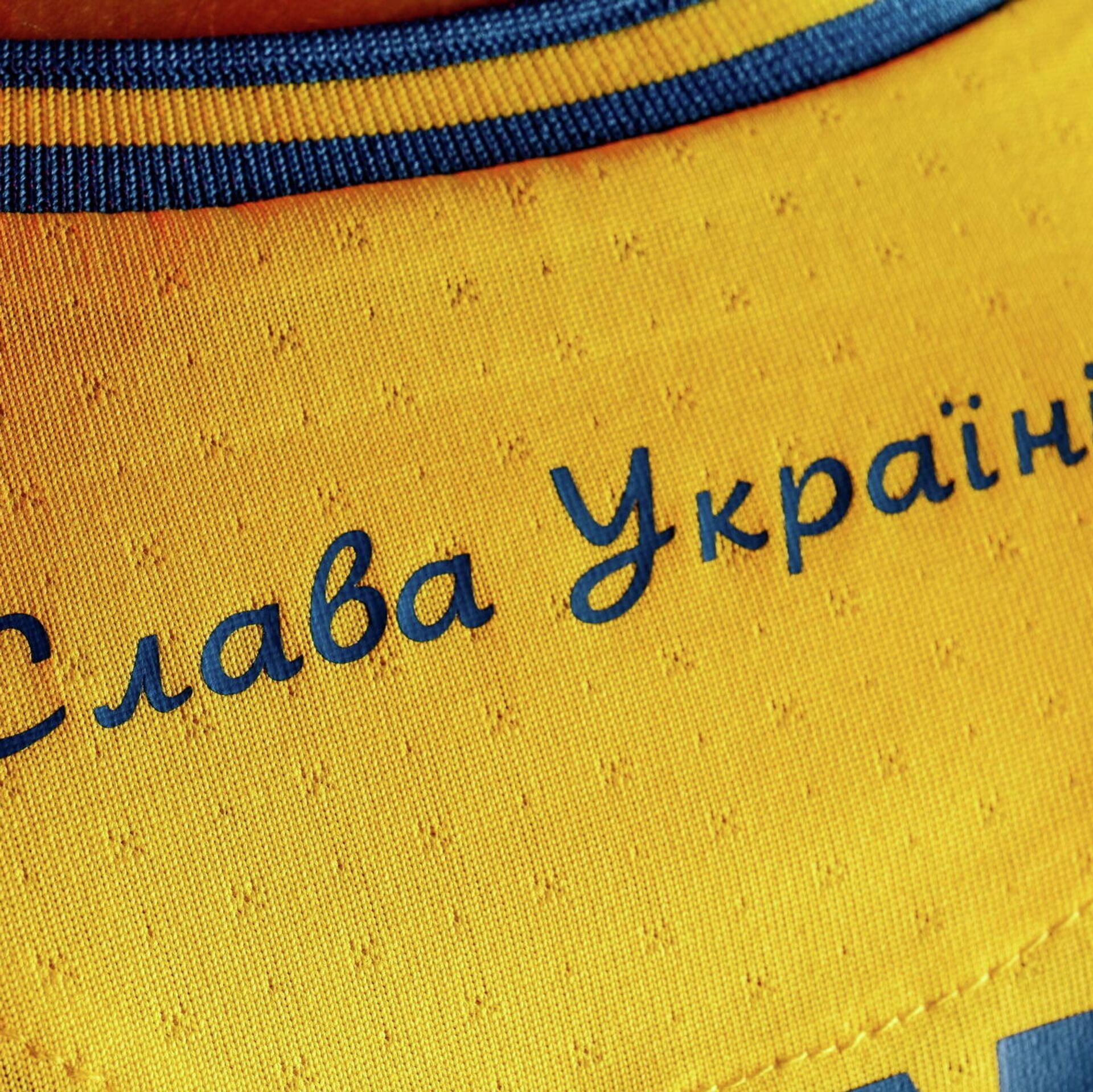 La camiseta lleva los contornos de Ucrania con la península de Crimea como parte de su territorio y el lema ¡Gloria a Ucrania! ¡Gloria a sus héroes! que, según la portavoz del Ministerio de Exteriores ruso, María Zajárova, es un intento de Kiev de dar una imagen positiva al saludo asociado actualmente a los grupos ucranianos nacionalistas de los tiempos de la Segunda Guerra Mundial.